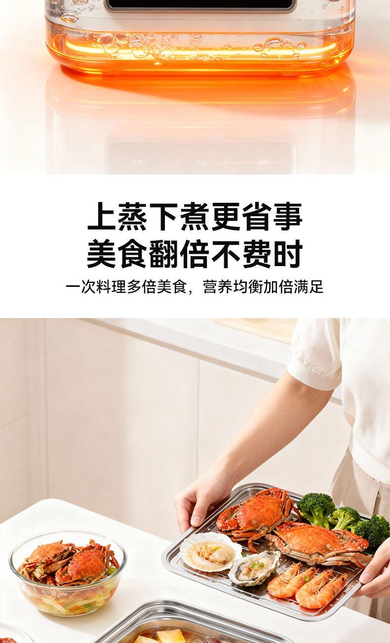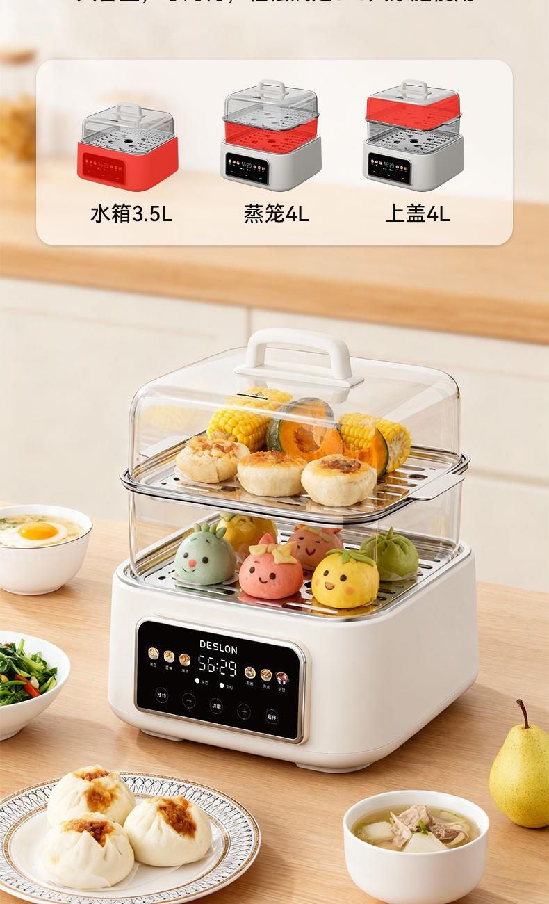 2、双层4L+4L蒸格随心搭配,满足多人使用;