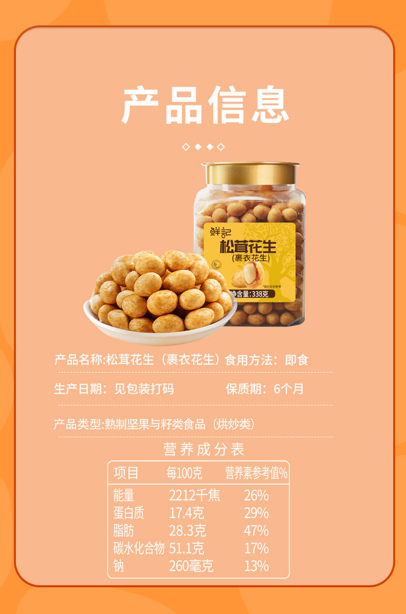 鲜记松茸花生338g(博士帽罐装)