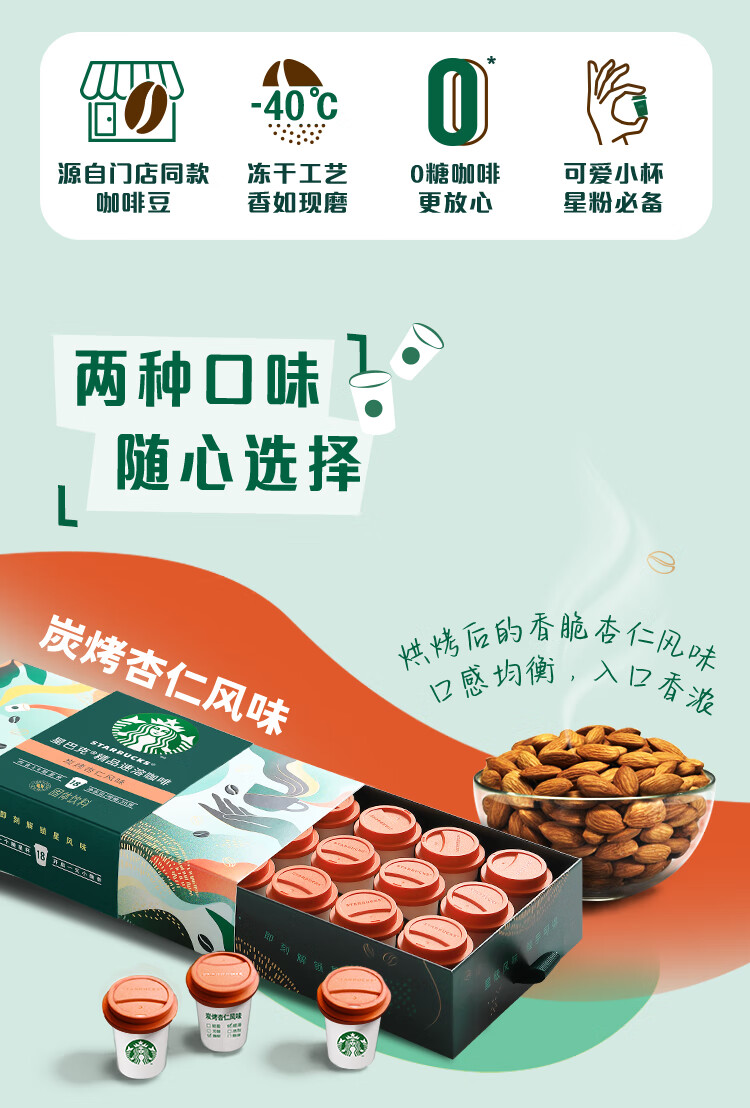 星巴克随星杯2.0系列炭烤杏仁风味2g*18颗精品冻干黑咖啡