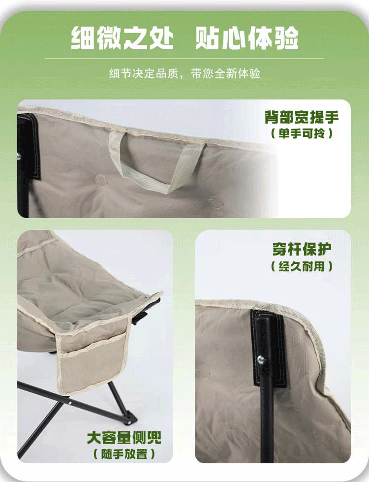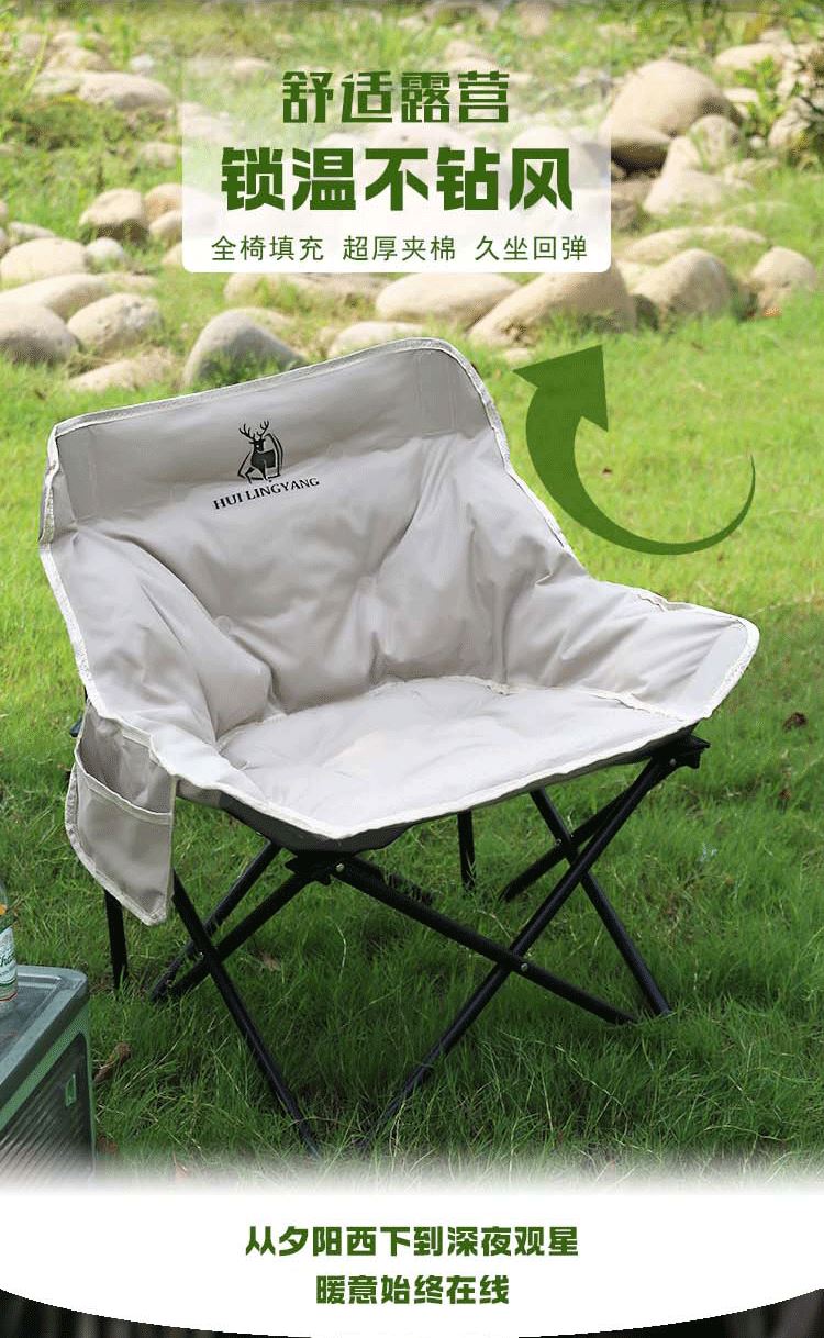 型号:HLY-ZDY-25015 颜色:卡其色,椅面宽:60cm 椅面高:68cm 椅座支架:43cm*43cm 收纳尺寸:67*22*20cm 重量:约1.9kg 承重:100kg 材质:600d牛津布、碳钢管、太空棉填充 秋冬加厚加棉款,精选优质加棉面料,保暖性超强。独特人体工学设计,贴合身体曲线,久坐不累。折叠便携,轻松收纳