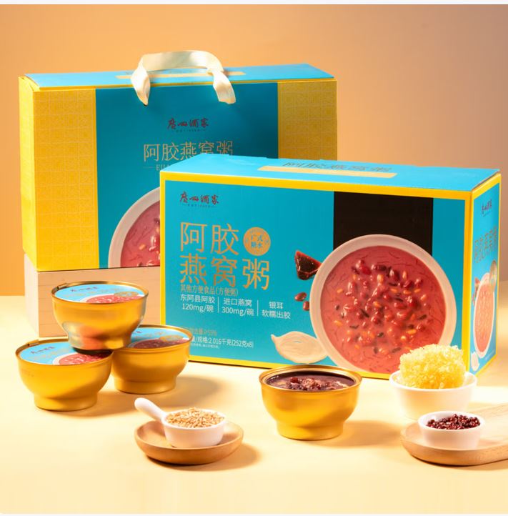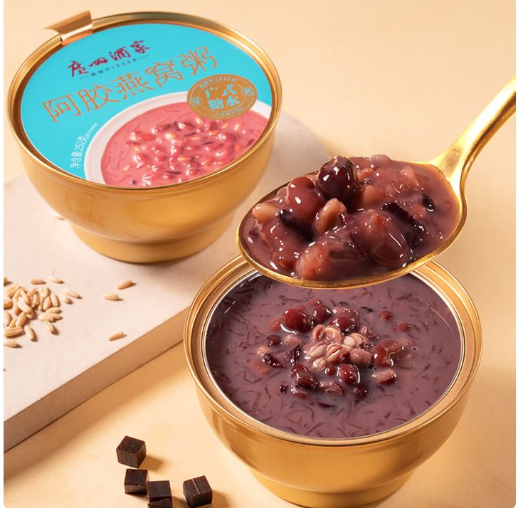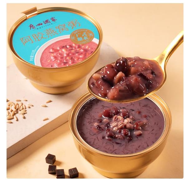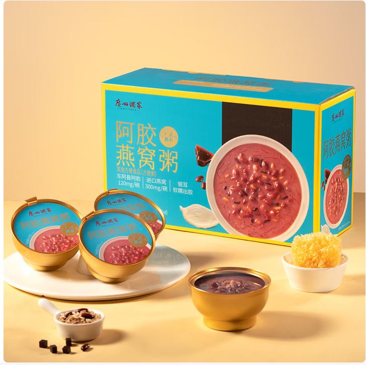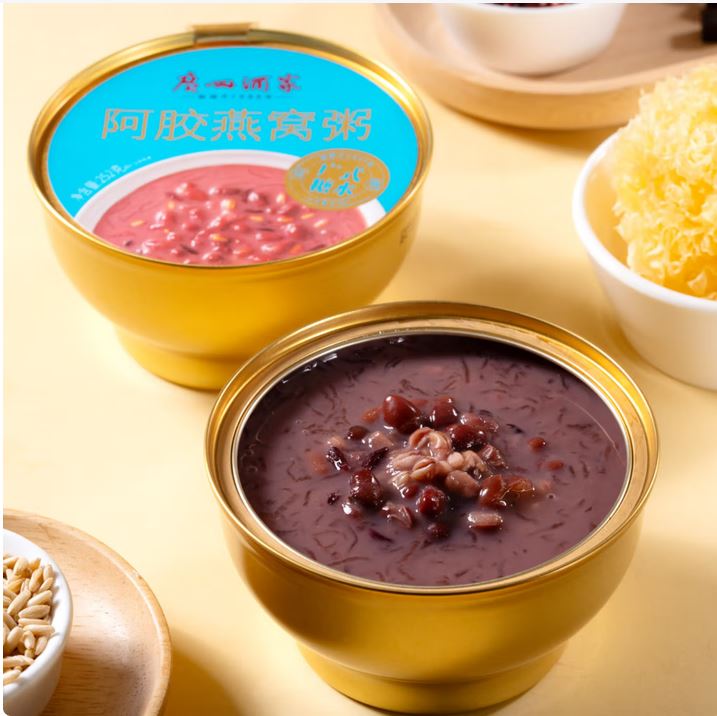 内容物/主要原料:水、纯牛奶、红糖、黑米、红小豆、燕麦、糯米、银耳、燕窝、阿胶 产品规格:1*4*2016g 产品卖点 选用进口燕窝,300mg/碗,浓郁拉丝; 东阿产地阿胶,120mg/碗,味道甘醇; 添加银耳炖煮,软糯胶润; 多重谷物,口感层次丰富;