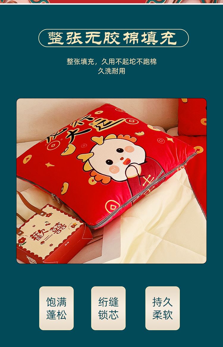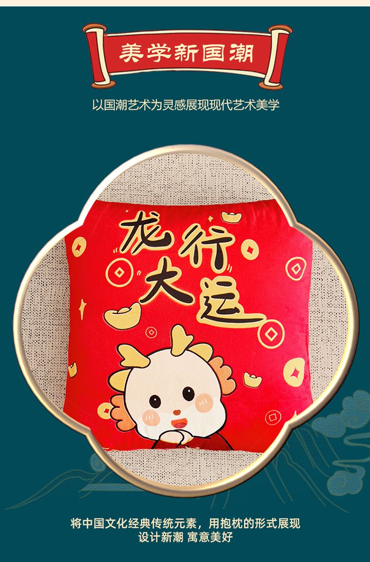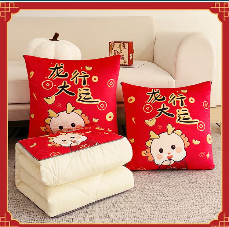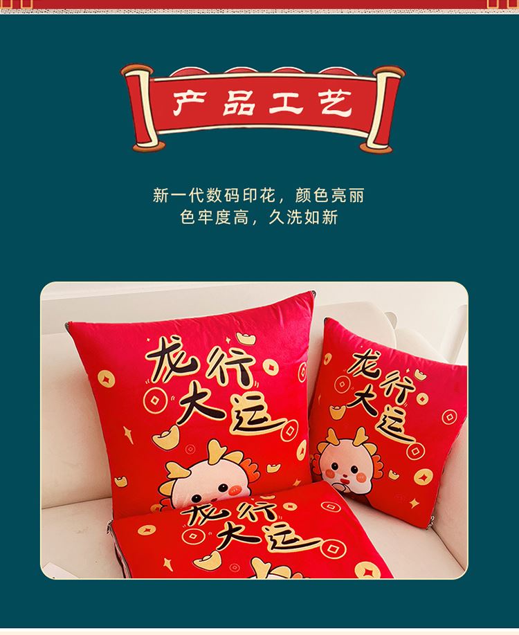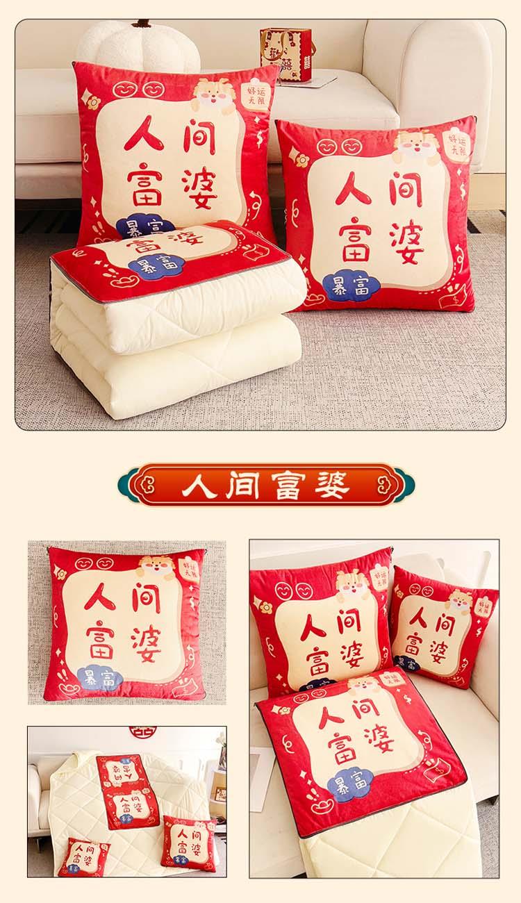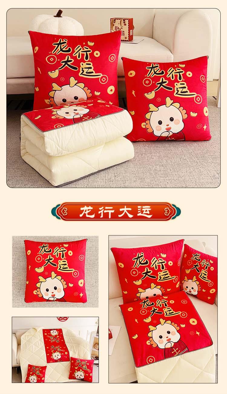花色:金龙送富/龙年暴富/龙年大吉/龙行大运/人间富婆/可一件定制 规格:折叠40*40cm展开105*150cm 面料:整张无胶棉(聚酯纤维) 填充:水晶绒+亲肤磨毛布(聚酯纤维) 工艺:3D数码印花 国潮当道,超柔水晶绒抱枕被 ,以国潮艺术为灵感展现现在艺术美学, 将中国文化经典传统元素,用抱枕的形式展现设计新潮 ,寓意美好 一枕多用 ,轻松切换 ,自在随心, 整张棉填充 ,久用不起坨, 不跑棉 ,久洗耐用, 新一代数码印花。