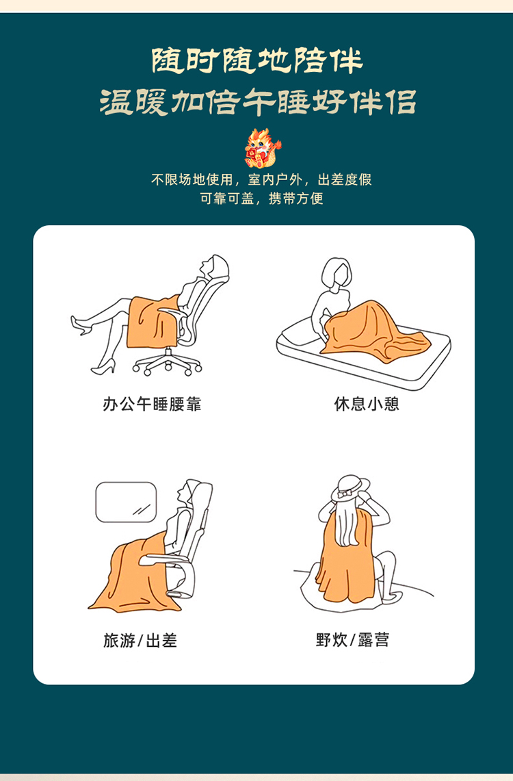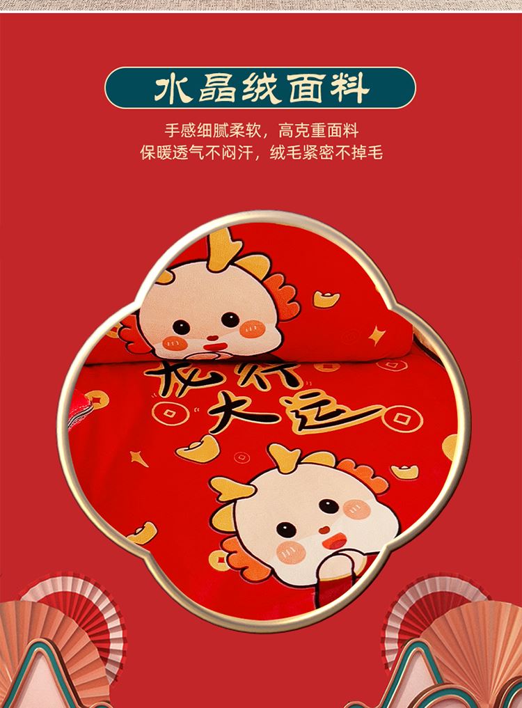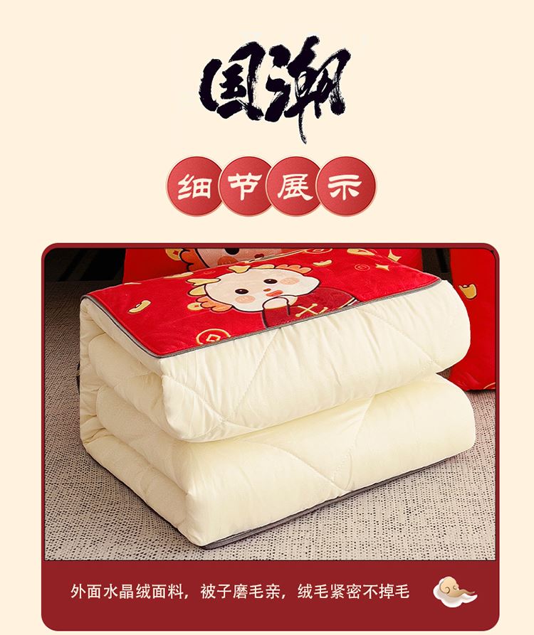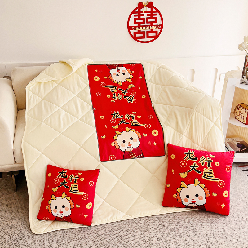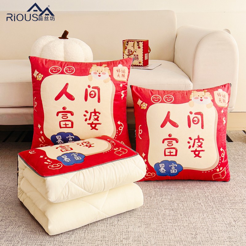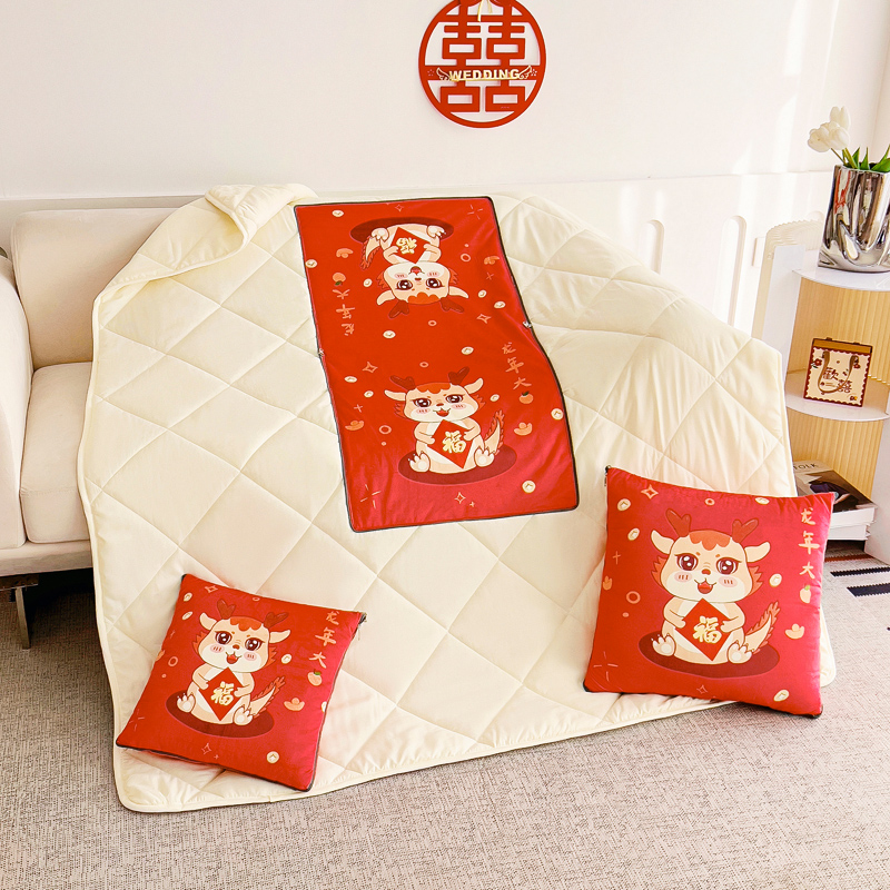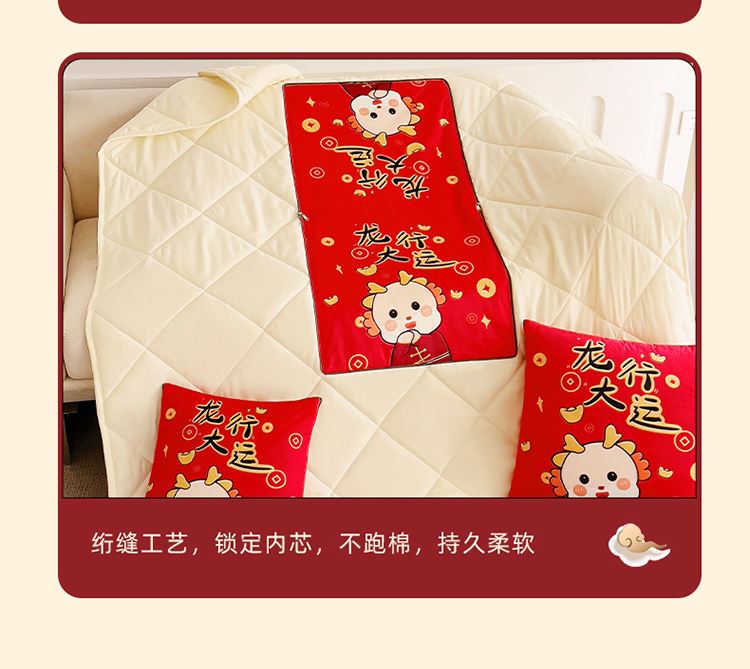 花色:金龙送富/龙年暴富/龙年大吉/龙行大运/人间富婆/可一件定制 规格:折叠40*40cm展开105*150cm 面料:整张无胶棉(聚酯纤维) 填充:水晶绒+亲肤磨毛布(聚酯纤维) 工艺:3D数码印花 国潮当道,超柔水晶绒抱枕被 ,以国潮艺术为灵感展现现在艺术美学, 将中国文化经典传统元素,用抱枕的形式展现设计新潮 ,寓意美好 一枕多用 ,轻松切换 ,自在随心, 整张棉填充 ,久用不起坨, 不跑棉 ,久洗耐用, 新一代数码印花。