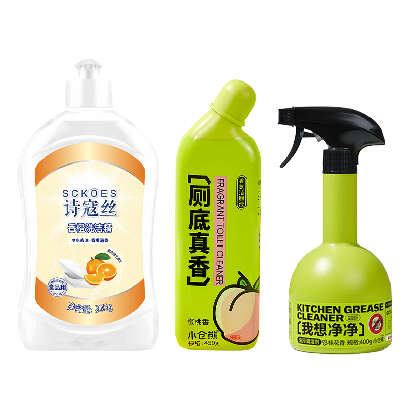 Sckoes诗蔻丝APG超浓缩洗洁精505g 小仓熊香氛洁厕液(蜜桃香)450g 小仓熊油污净厨房深层清洁400g 小仓熊马桶挂篮-(单个装)50g 小仓熊除臭鞋球12g 小仓熊冰箱除味蛋-柠檬30g 赠:Sckoes诗寇丝木浆清洗海绵1块 小仓熊甄选礼盒(265*95*270mm)