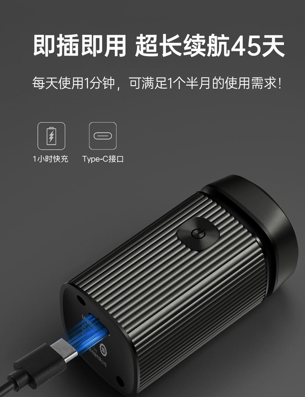 1、邻鹿LR-SS116卖点: 2、首创单头浮动技术, 3、太空铝机身, 4、6叶自研磨旋风刀片, 5、85g整机重量,mini便携, 6、7000转/分强劲动力, 7、1小时快充,续航45天, 8、Type-C接口,即插即用功能。