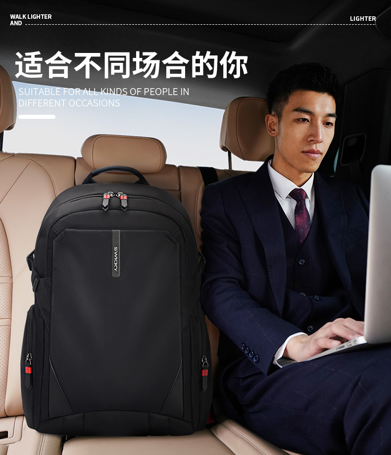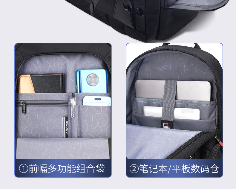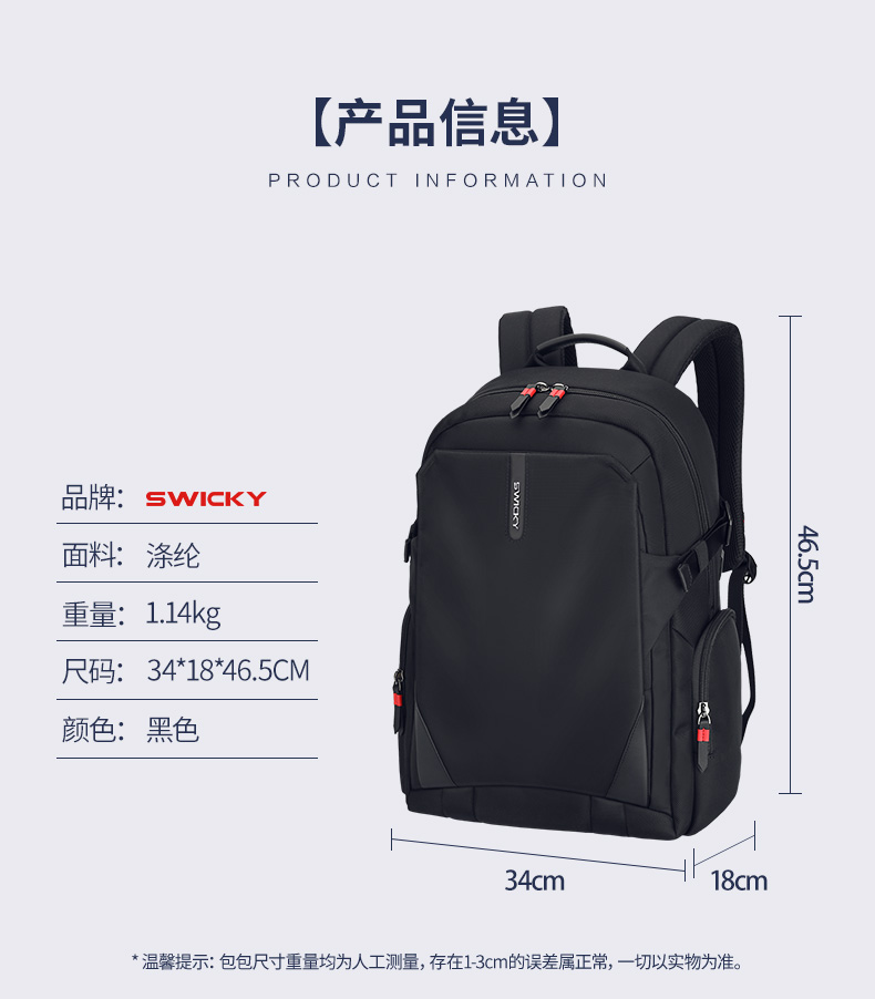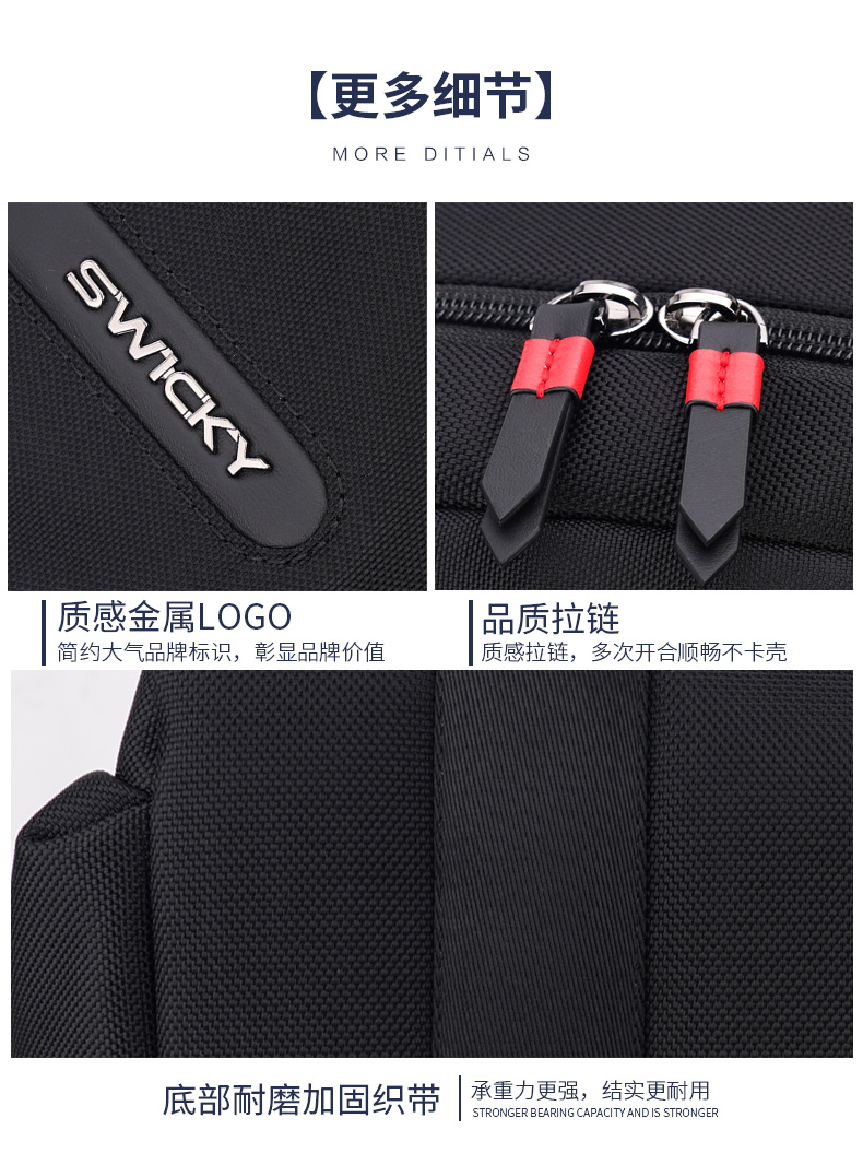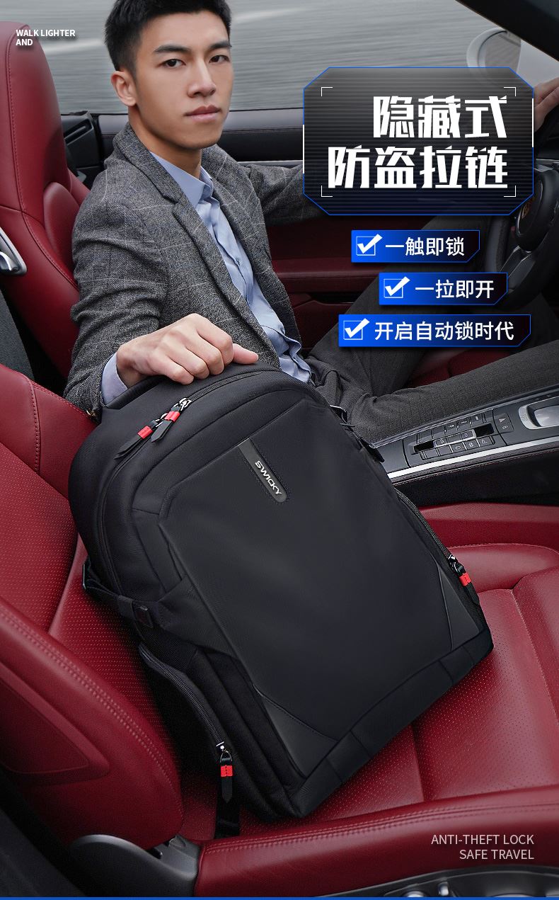 SWICKY瑞驰多功能休闲防盗拉链商务双肩包88099黑色