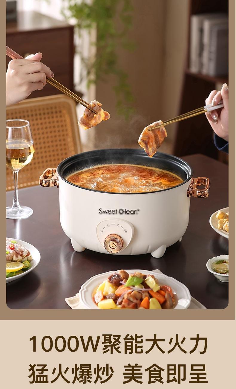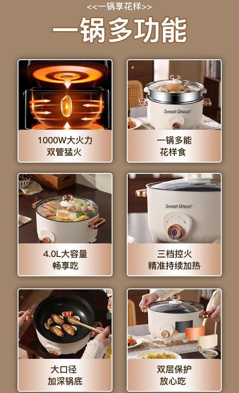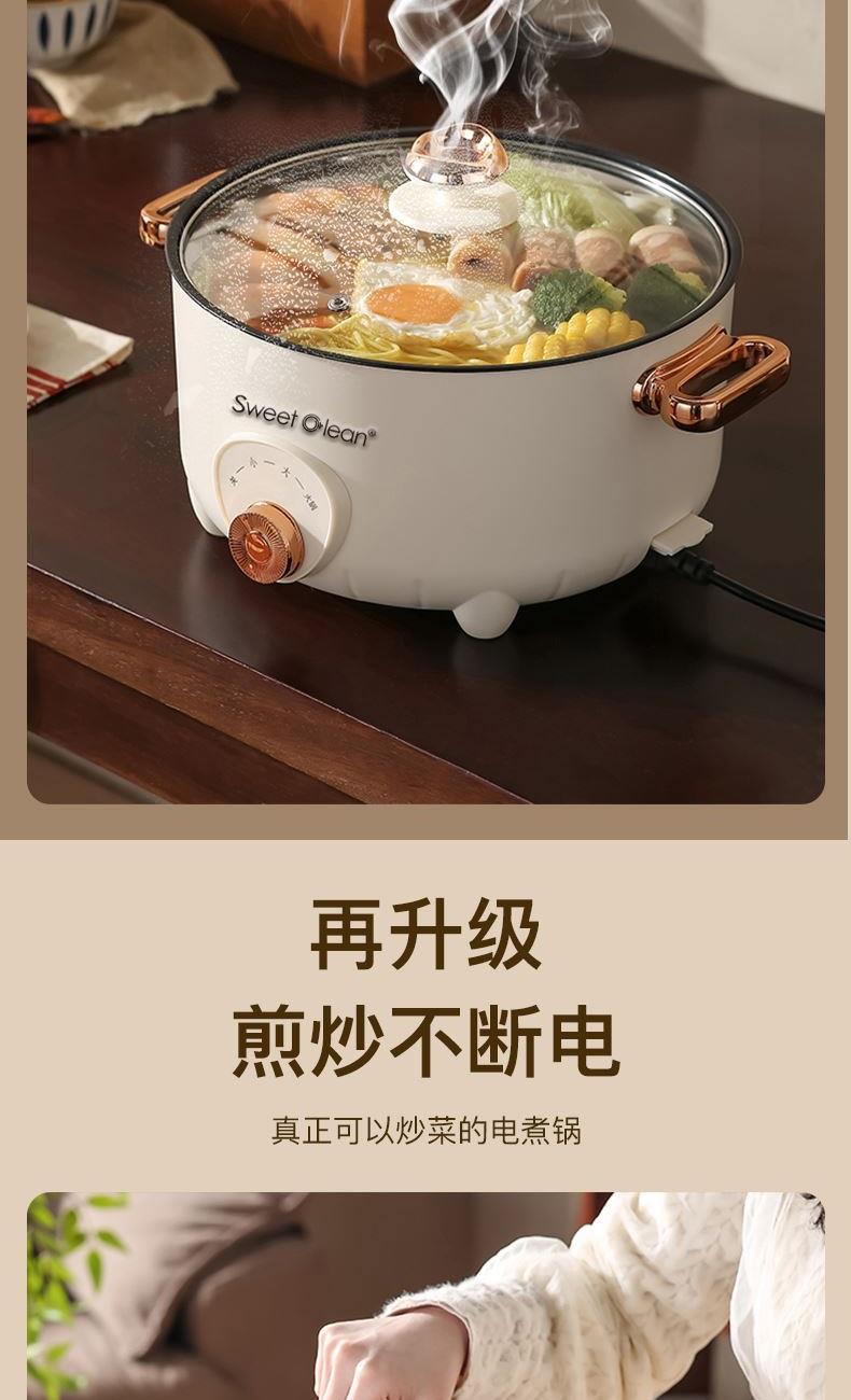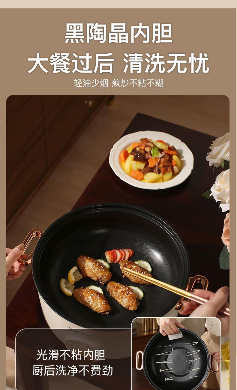 精通蒸/煮/涮的电火锅一锅多用美食享不停,蒸、一锅同出两种美食,上蒸下煮方便快捷。不粘锅体熬煮不糊,自动保温美味回温,双层防烫更安全,分离式电火锅身蒸架分离便捷清洗,玻璃锅盖,人性化透视化可观察食物状态。蒸笼,选用食品级PP材质健康安全安心。锅身塑料锅身安全防烫外观简约耐看,旋钮一键旋钮选择火力大小可调控操作简单