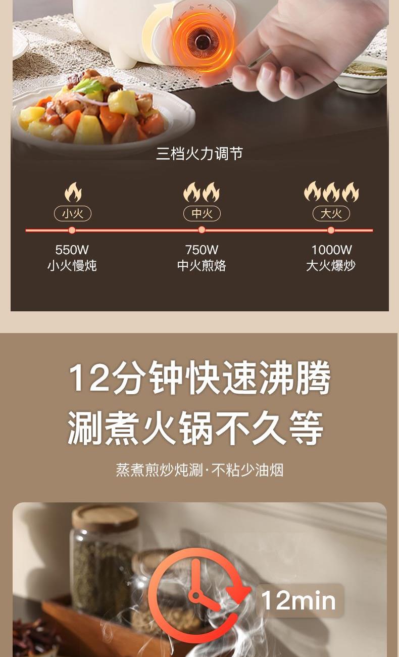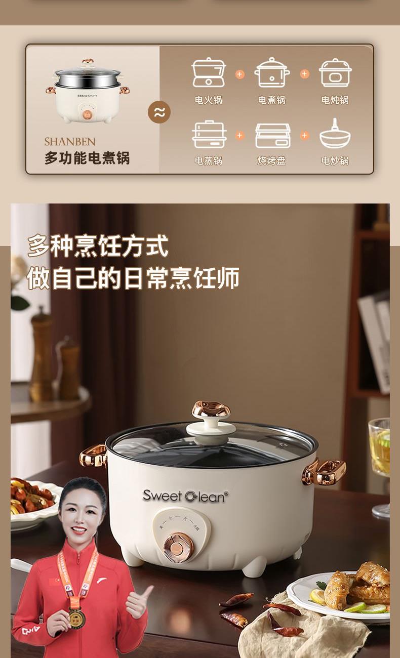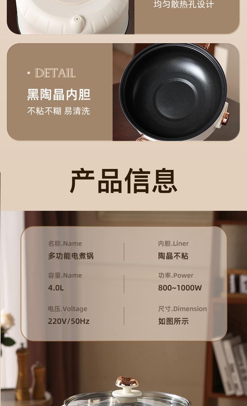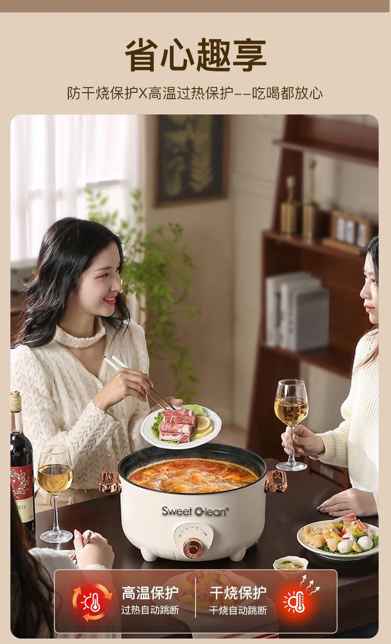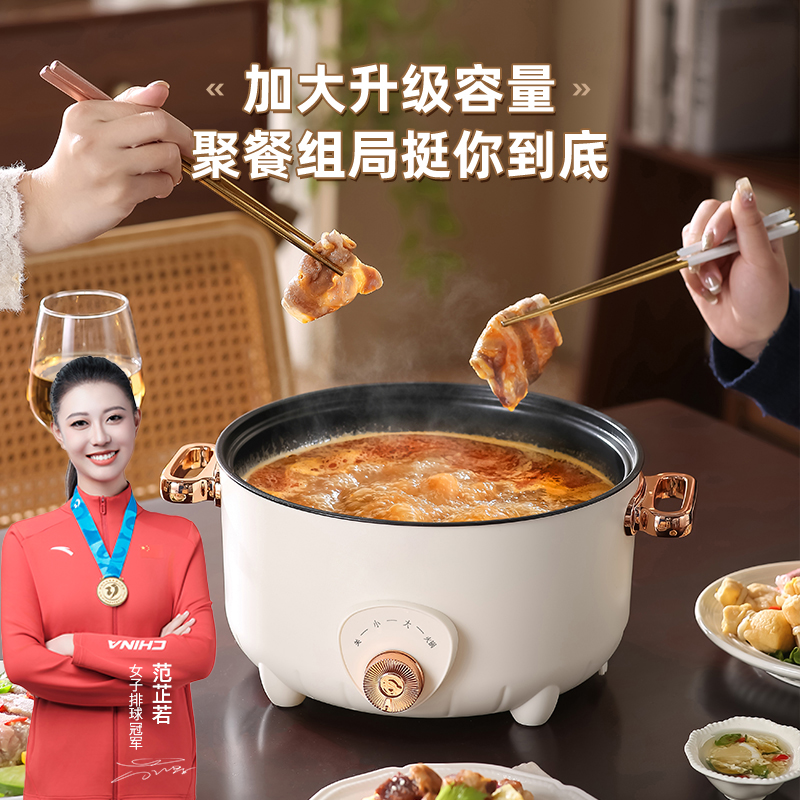 精通蒸/煮/涮的电火锅一锅多用美食享不停,蒸、一锅同出两种美食,上蒸下煮方便快捷。不粘锅体熬煮不糊,自动保温美味回温,双层防烫更安全,分离式电火锅身蒸架分离便捷清洗,玻璃锅盖,人性化透视化可观察食物状态。蒸笼,选用食品级PP材质健康安全安心。锅身塑料锅身安全防烫外观简约耐看,旋钮一键旋钮选择火力大小可调控操作简单