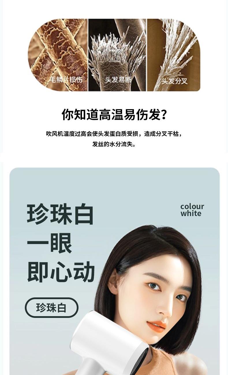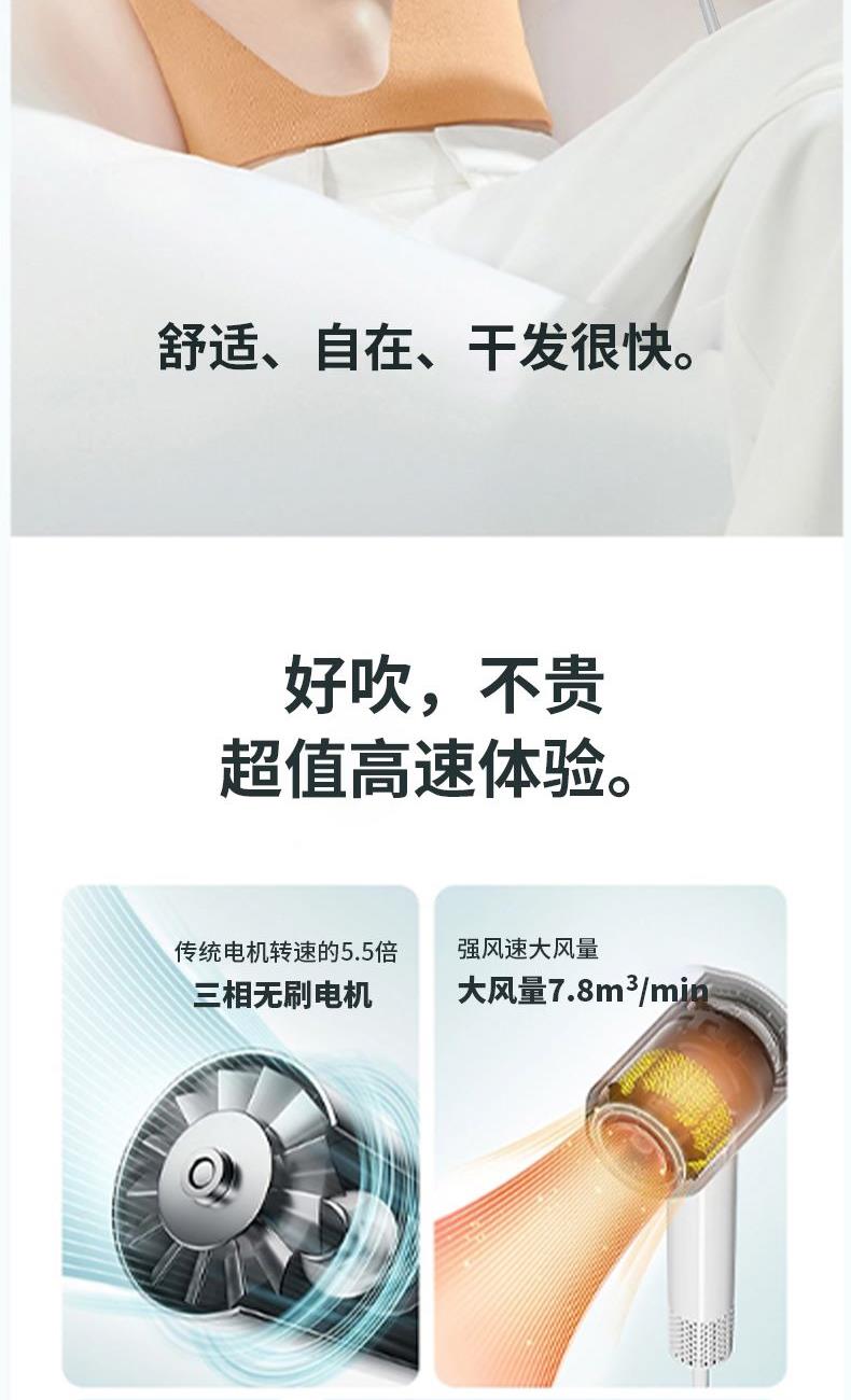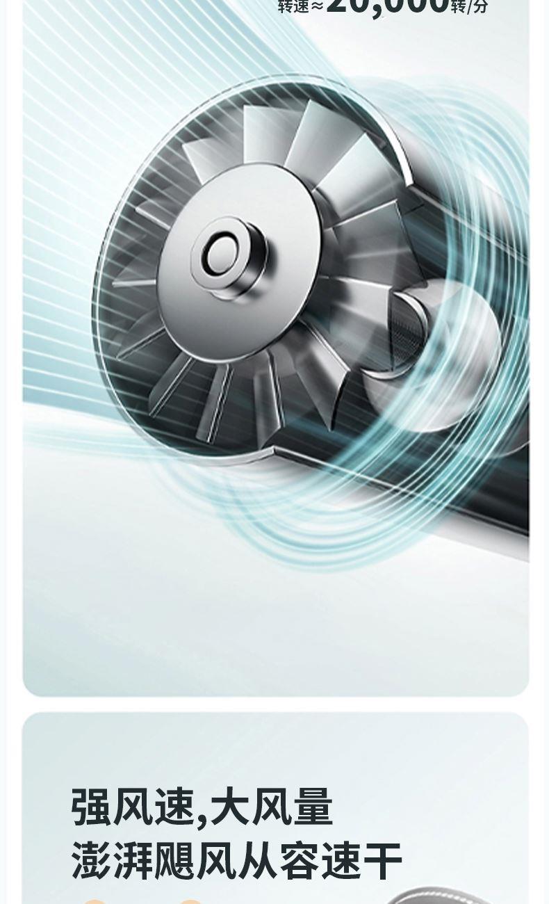 让柔和风声伴你每一次干。通过减小气流在传输过程中的阻力,有效控制风噪,柔和大风速,声音不刺耳,让您和家人享受更加愉悦的吹发体验。