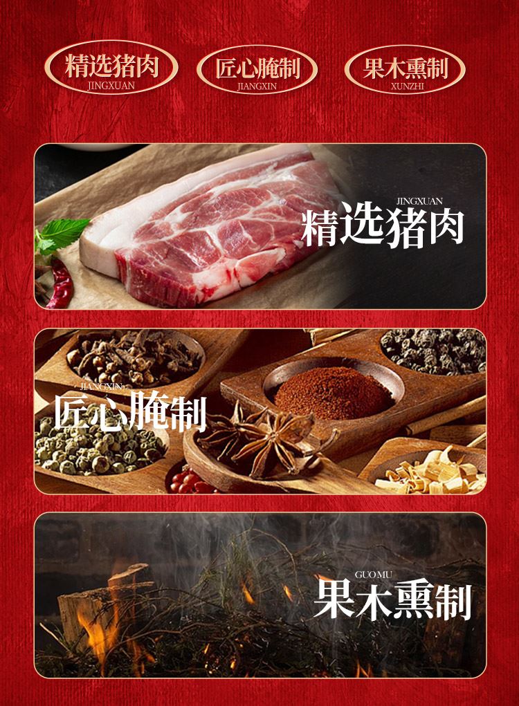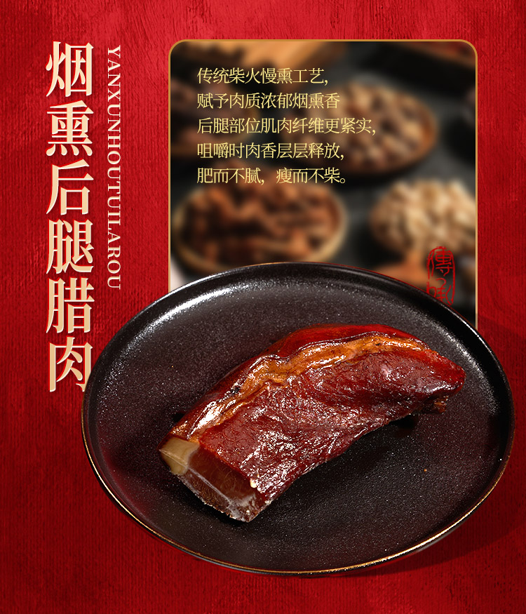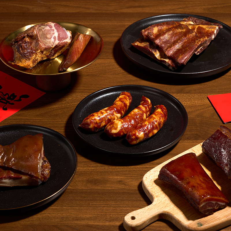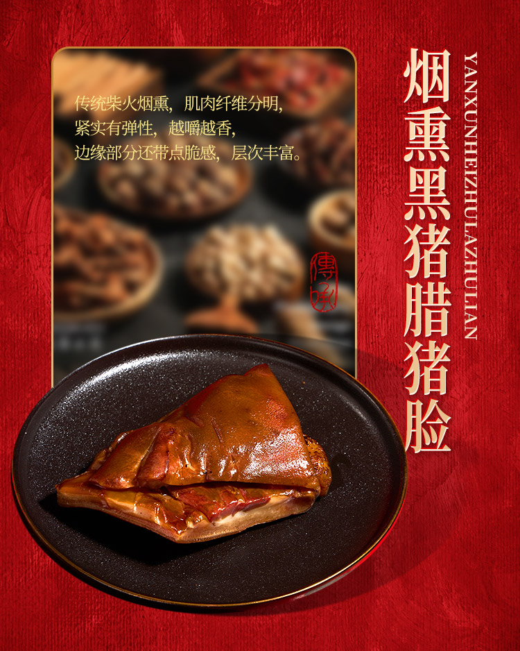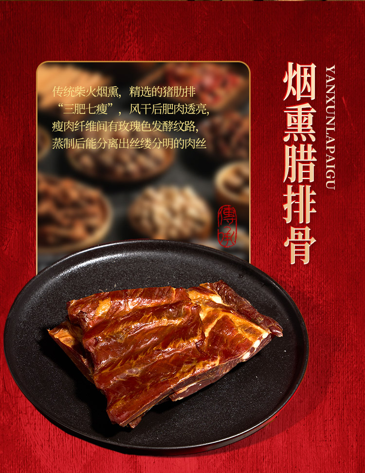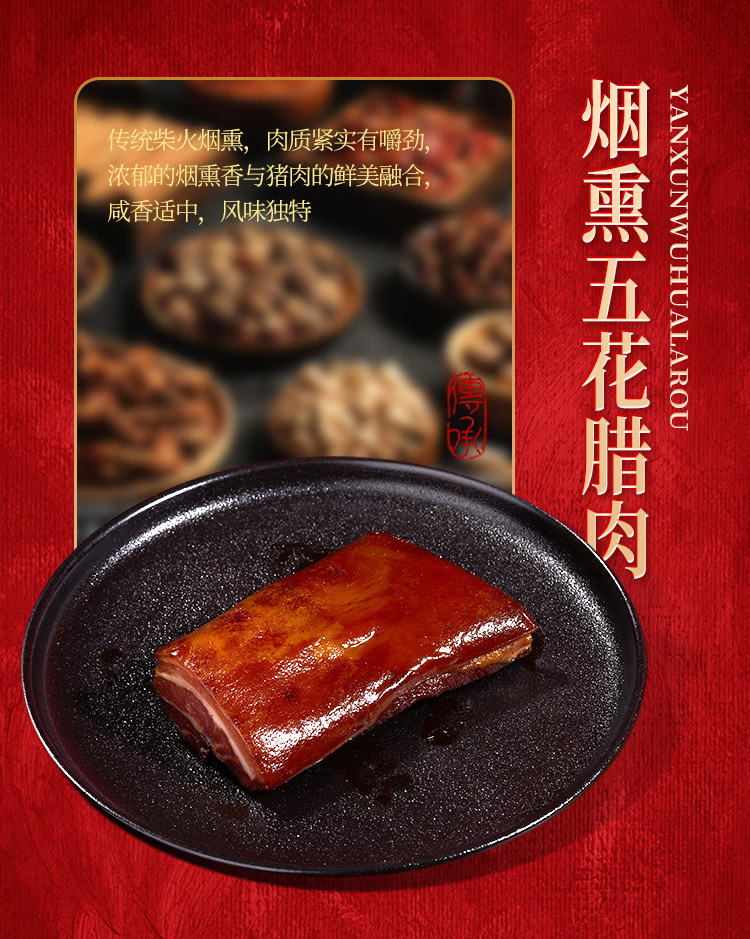 烟熏腊排骨300g 烟熏后腿腊肉200g 烟熏五花腊肉200g 烟熏黑猪腊猪舌200g 烟熏黑猪腊猪脸200g 麻辣香肠200g 香辣香肠200g 广味香肠200g