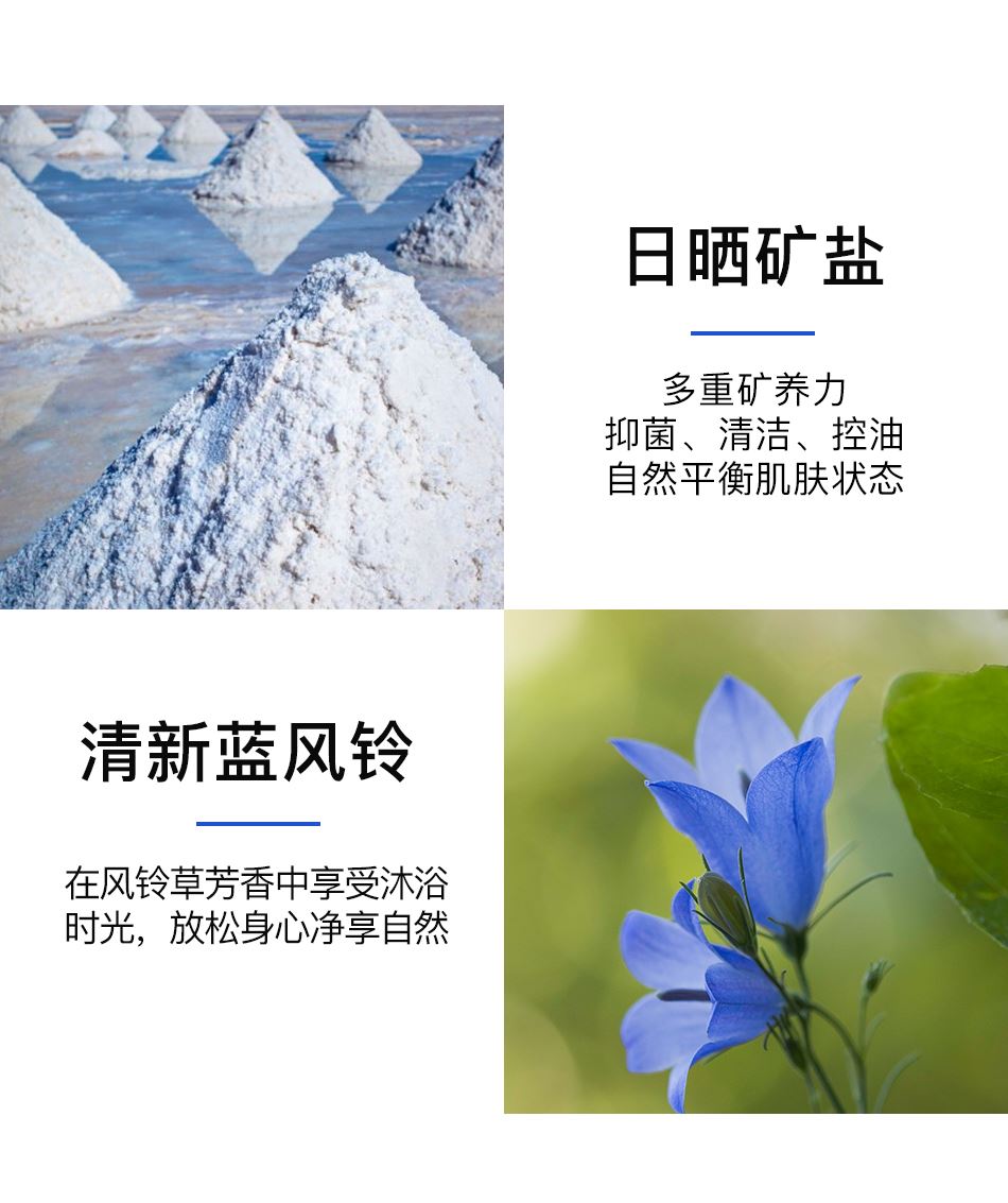 蓝风铃精油河东大盐手工皂 温和洁肤,为肌肤补充多重矿物养分,使肌肤更加健康有活力。 【香气】天竺葵花香,也有独特的青草气息。