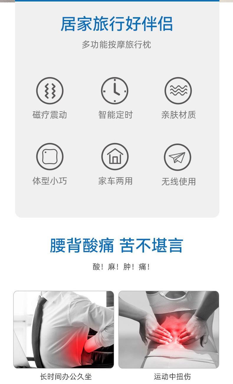 1.产品采用仿人体工程学设计和离子磁疗震动技术,轻柔按摩,直击穴位