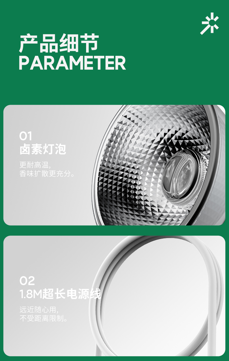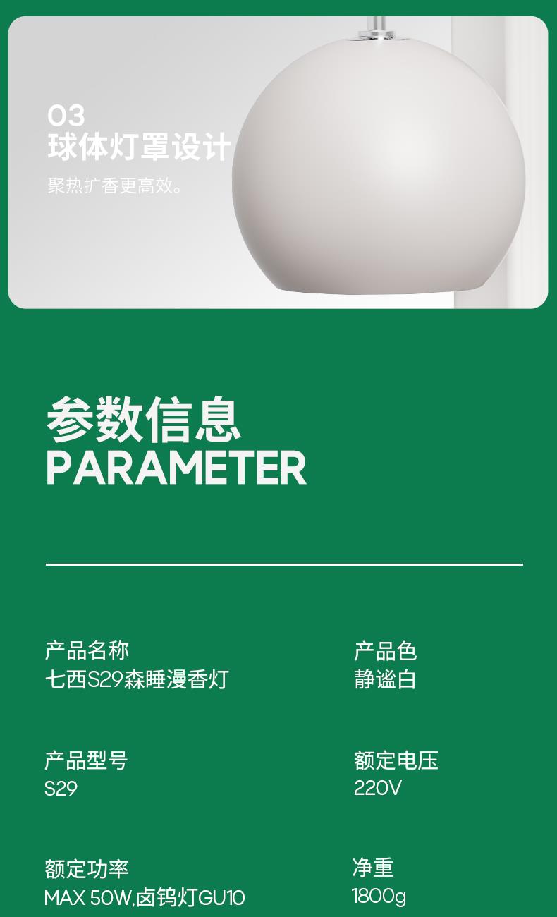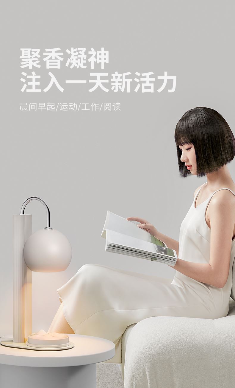 产品规格:107*161*303mm 产品净重:1.8kg 外箱毛重:2.6kg 外箱尺寸:210*345*115mm 产品颜色:静谧白 1、无火香薰,既可以作为香薰灯也可以作为床头灯、氛围灯 2、四档调光,控制香味扩散浓度 3、卤素灯泡耐高温,寿命长 4、2h 4h 8h三个定时扩香时长 5、日照金山造型扩香石,持久扩香