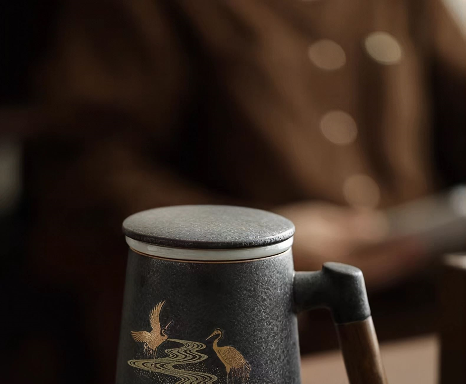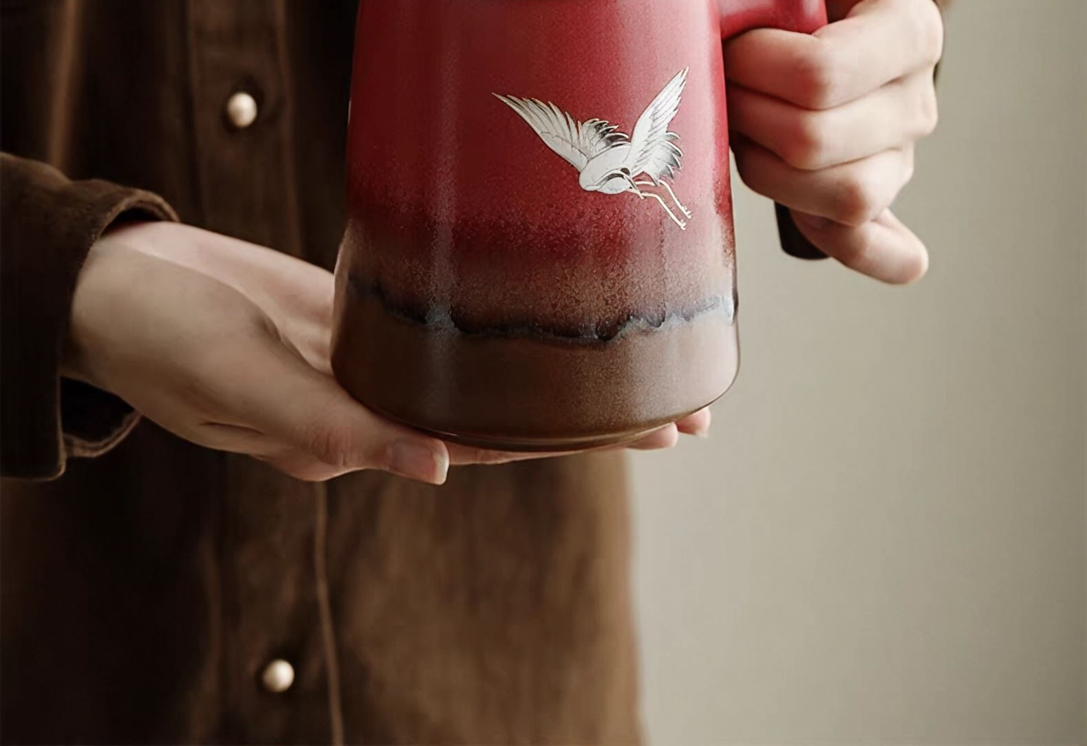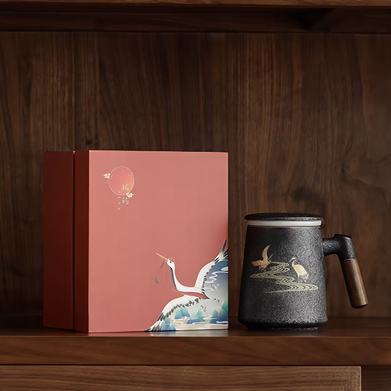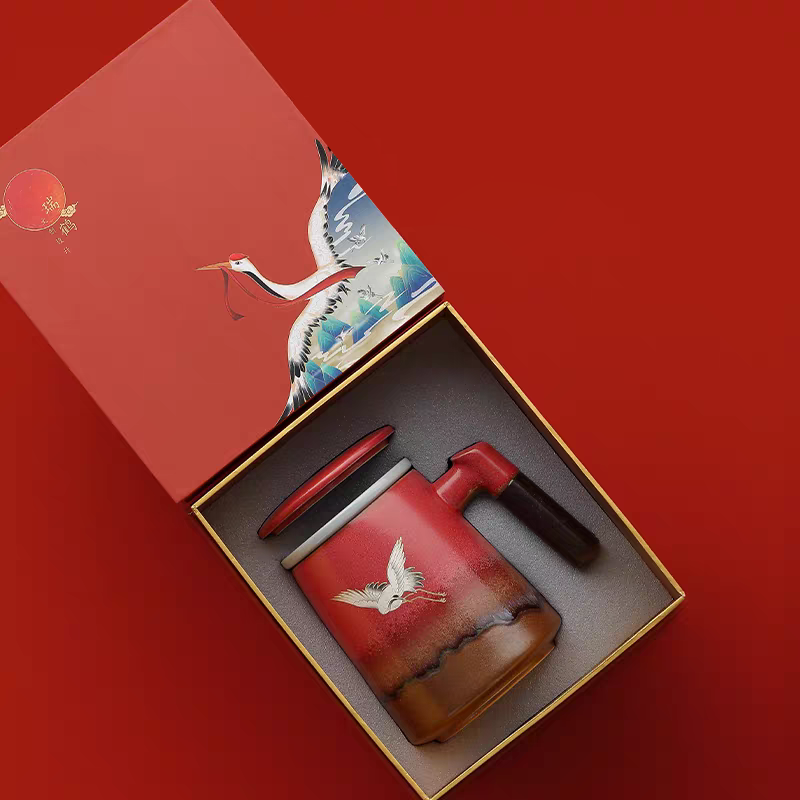 尾桥下窑故宫红瑞鹤复古窑变银斑泡茶杯商务会议礼品开门红日赠品