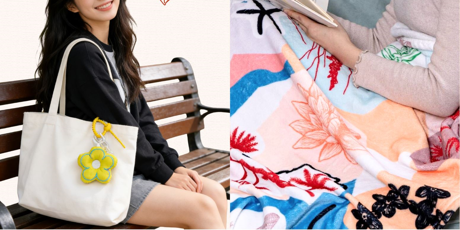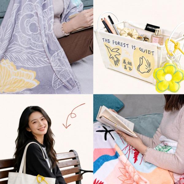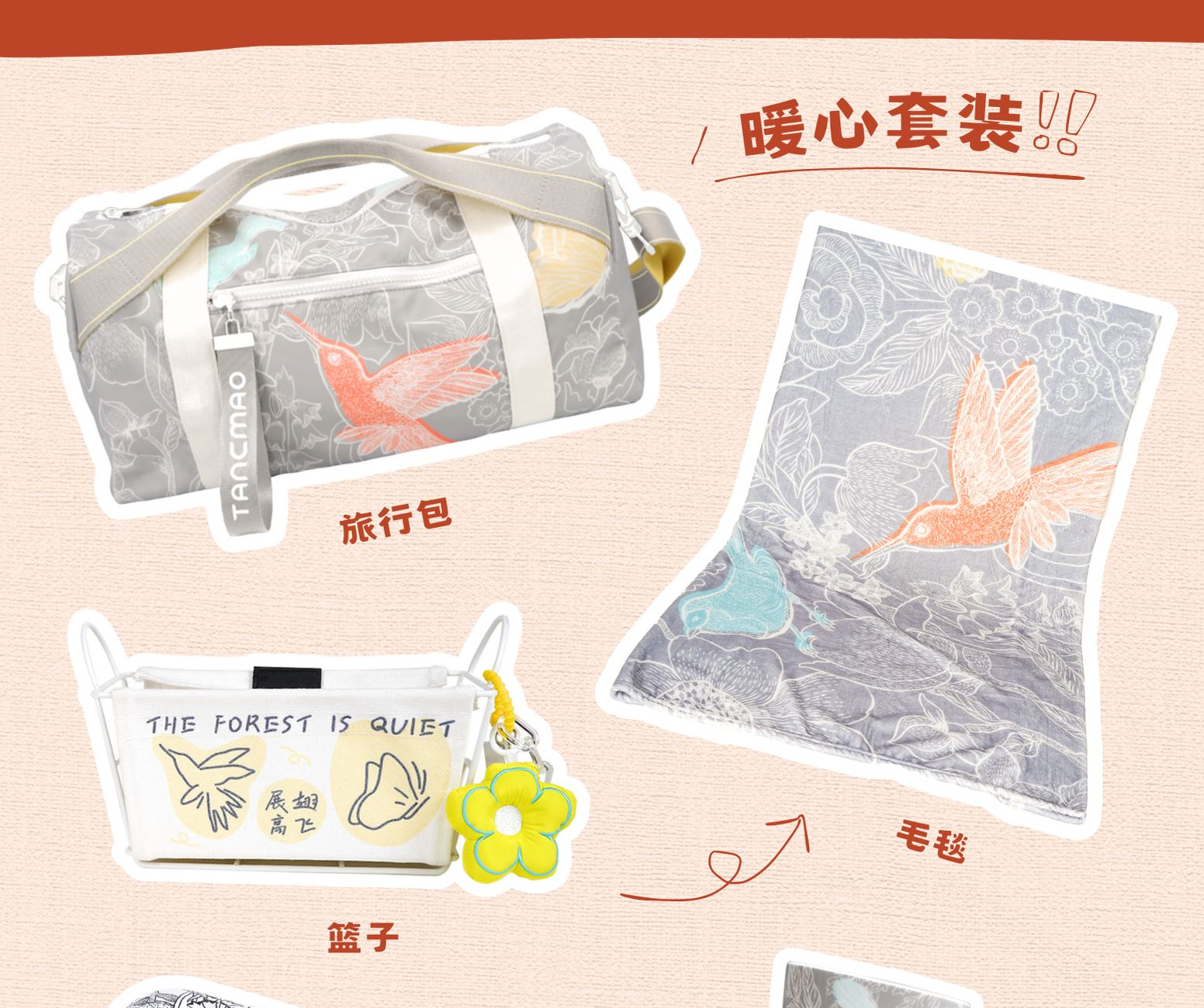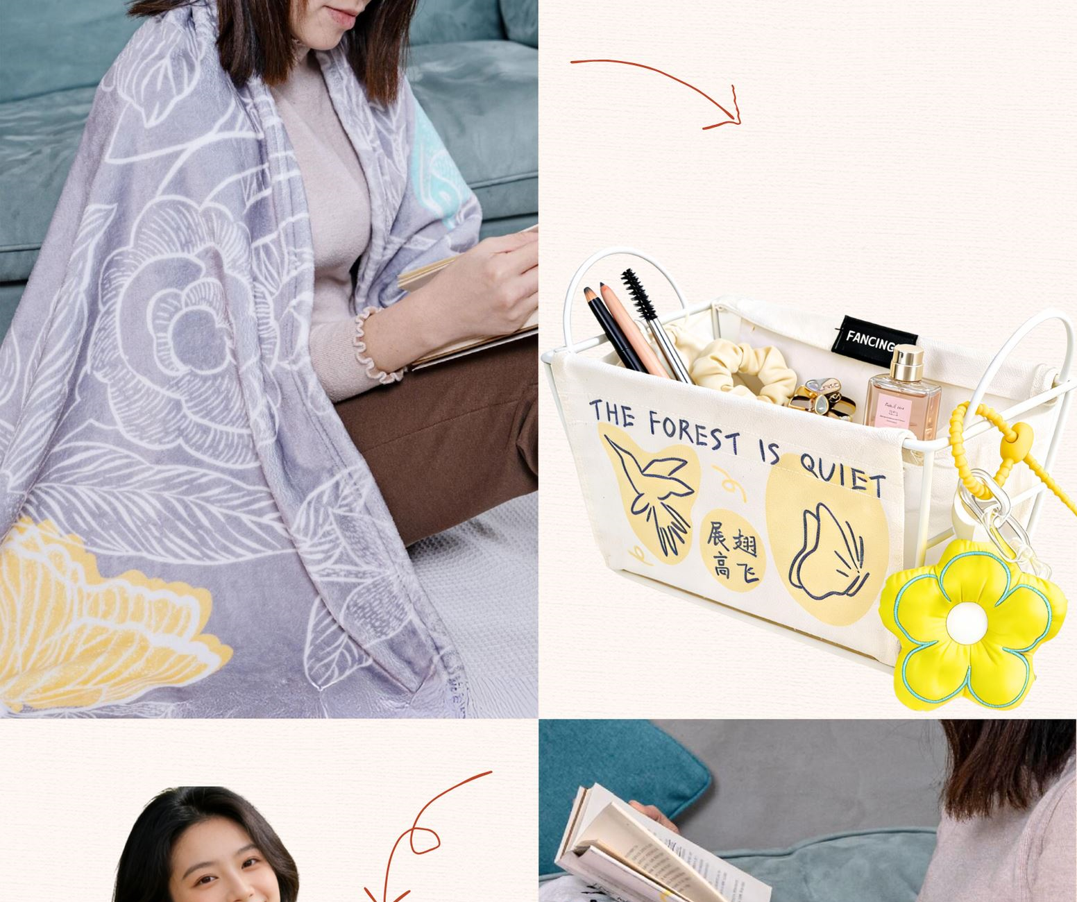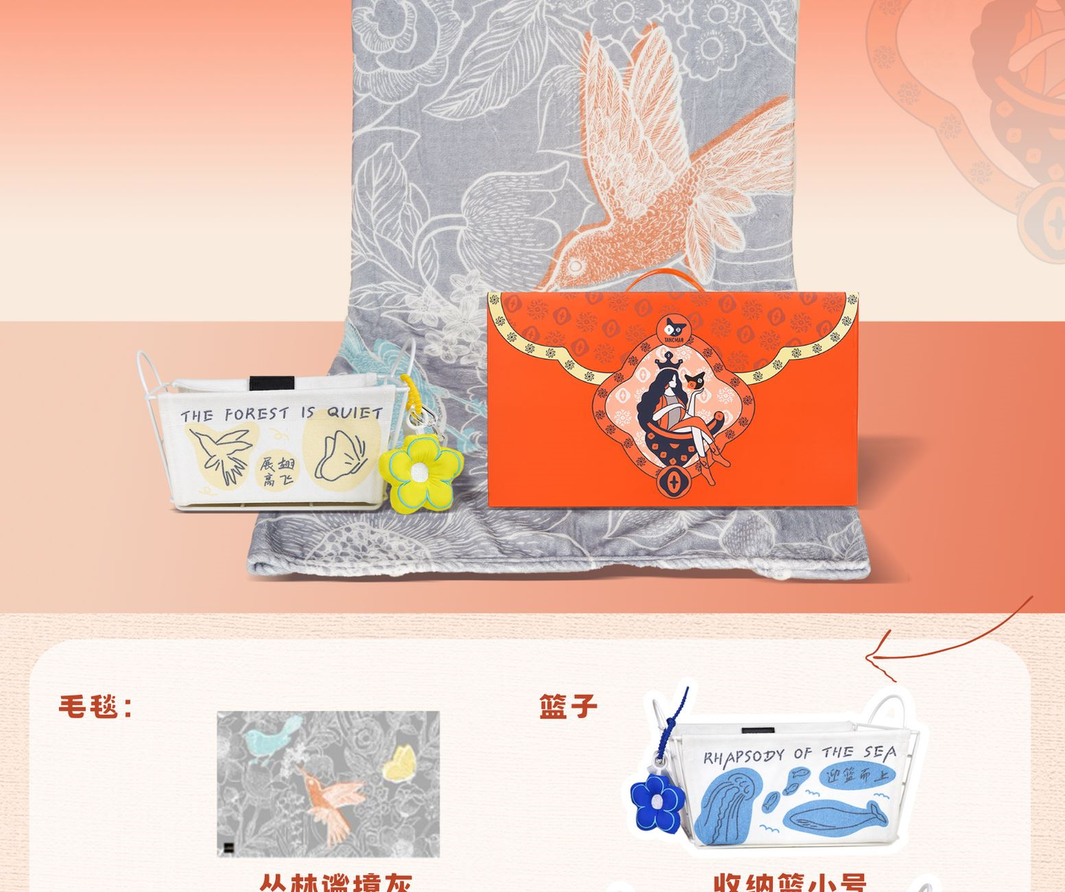 手提插口盒*1 小花挂件*1 蓝/黄收纳篮*1,海洋款/鸟蝶黄大/小两型号,小:245*120*95mm,大:300*140*130mm 毛毯*1,1500*1100mm(丛林灰/丛林蓝/海洋彩)