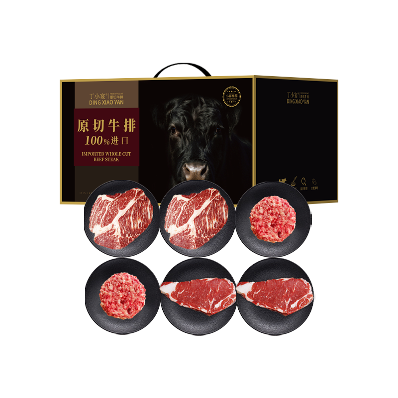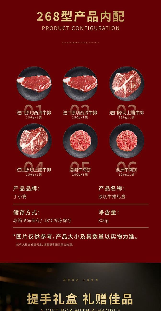 进口原切西冷牛排150gx1袋 进口原切上脑牛排150gx1袋 进口原切上脑牛排150gx1袋 进口原切西冷牛排150gx1袋 澳洲牛肉饼100gx1袋 澳洲牛肉饼100gx1袋 包装(泡沫箱+礼盒)
