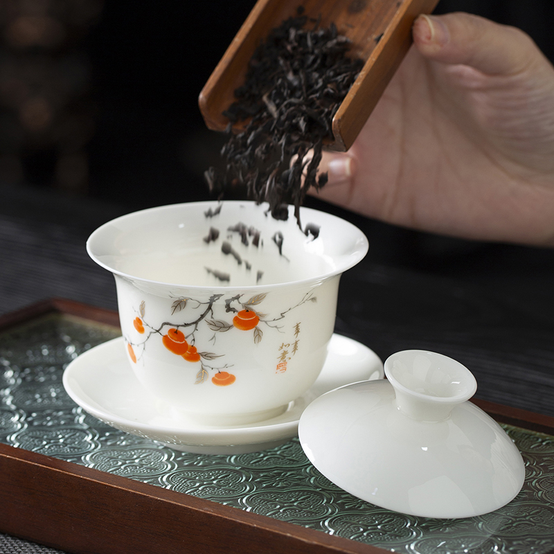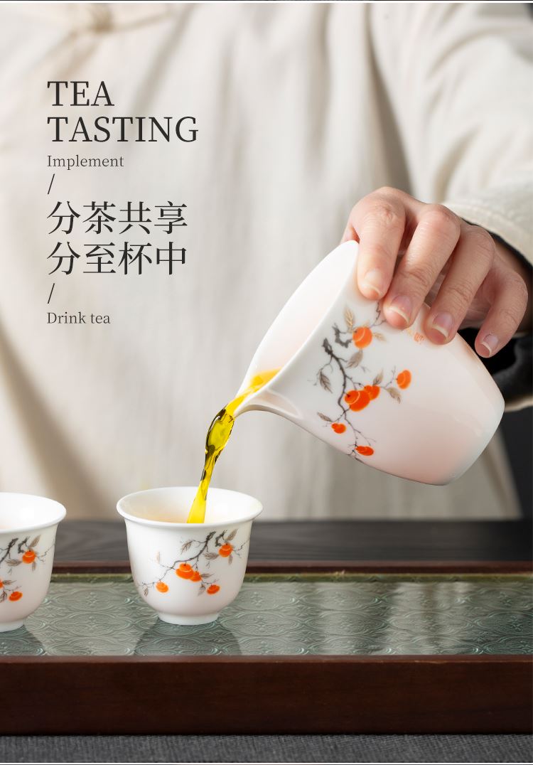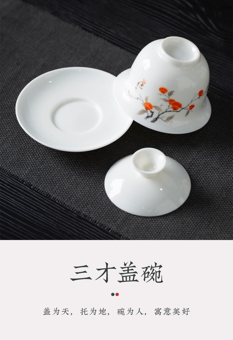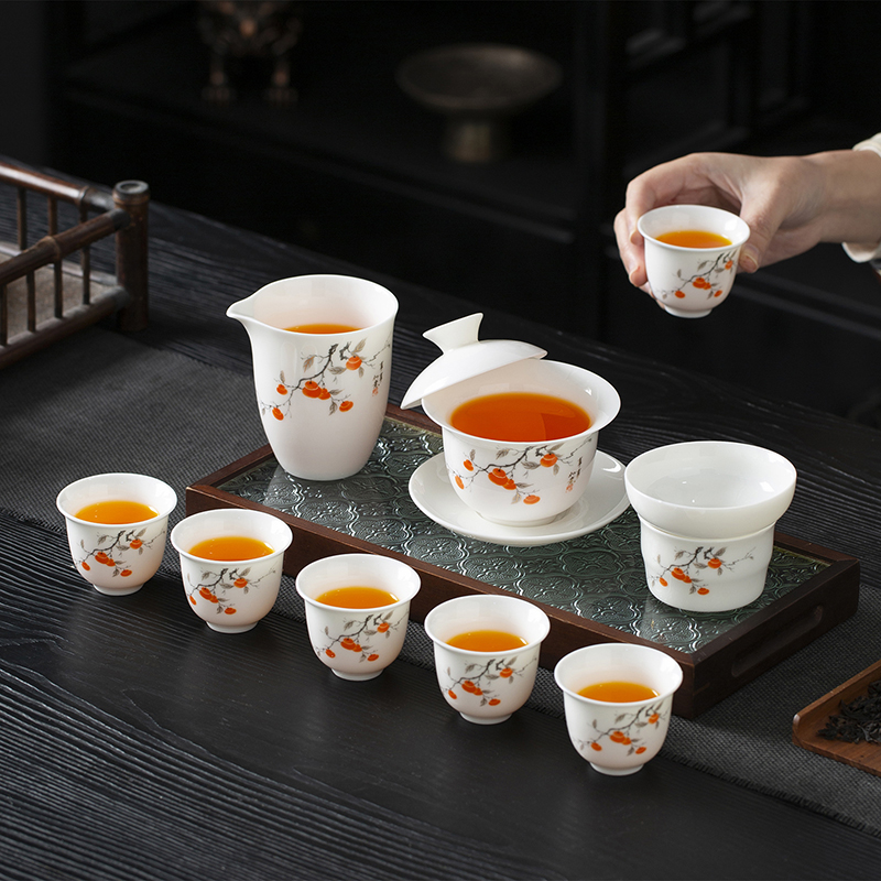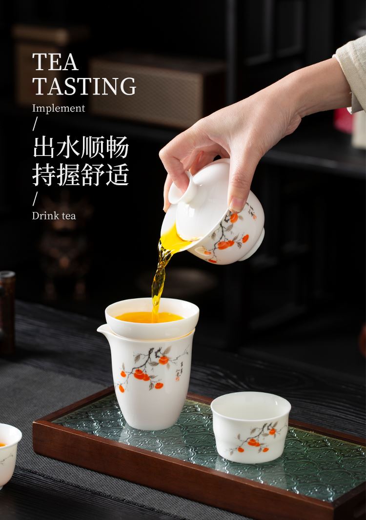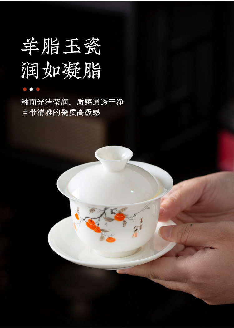 配置:品茗杯*6 盖碗*1 茶海*1 茶漏*1 礼盒*1 材质:羊脂玉瓷 礼盒尺寸:34cm*23cm*12.5cm 产品尺寸:盖碗175ml 品茗杯75ml 茶海225ml