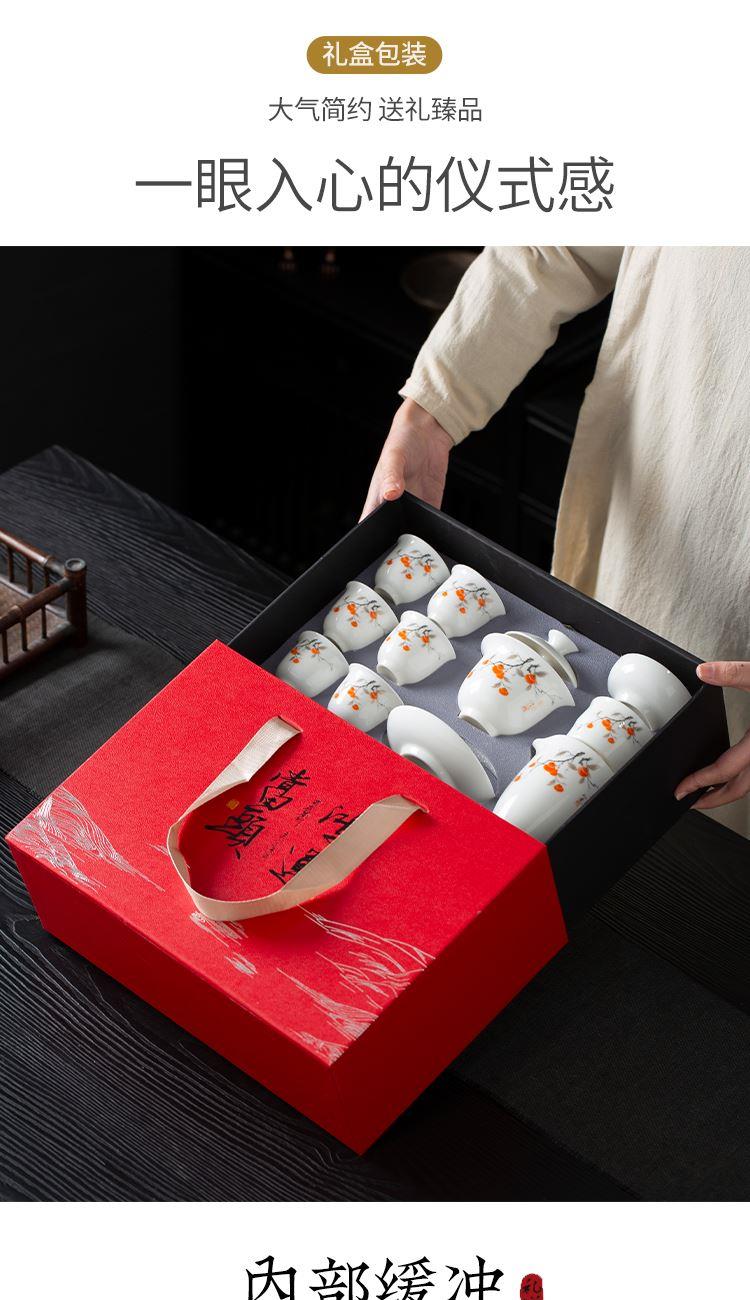 云博陶瓷羊脂玉瓷事事如意10头茶具套装中国风节庆礼品喜事用品