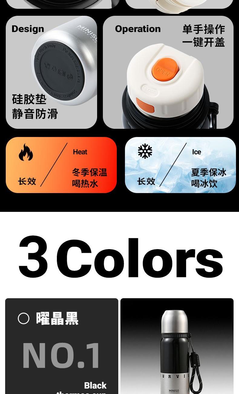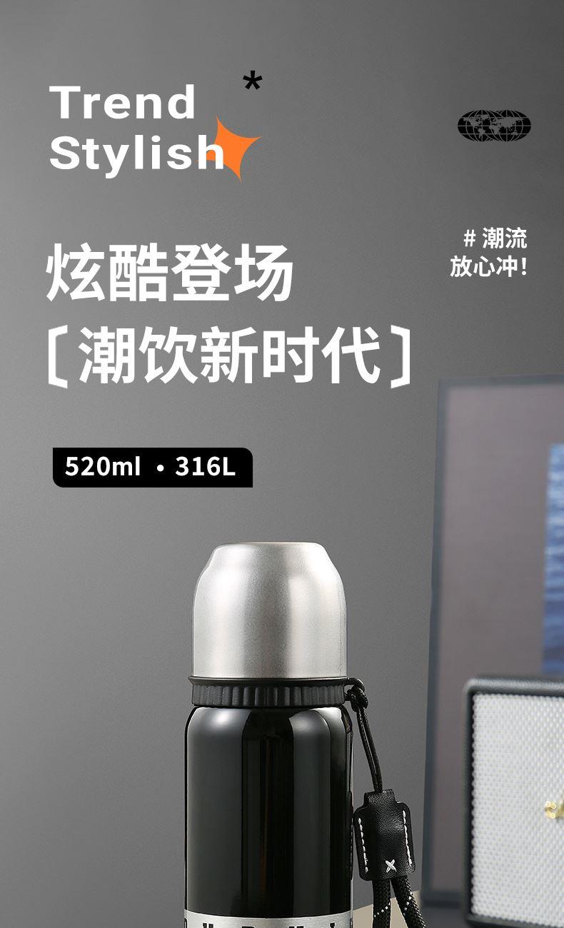 名创优品316L车载子弹头全钢杯盖保温杯520ml