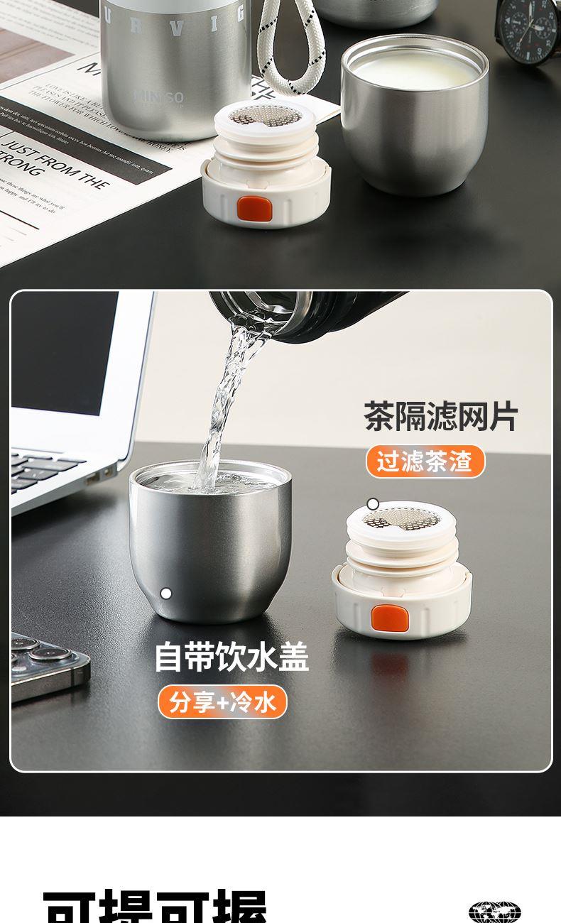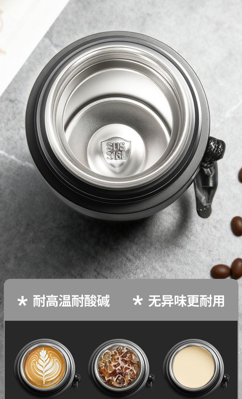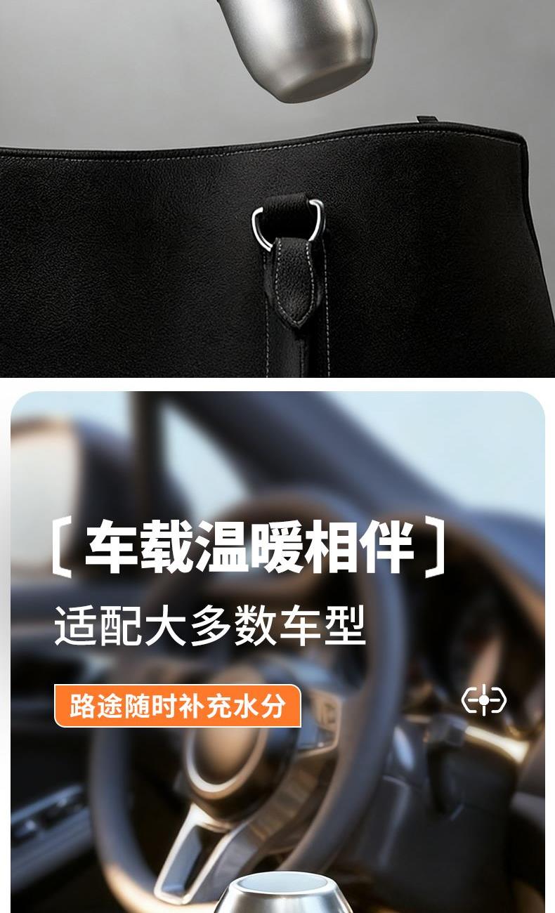 杯身样式:直身杯 杯身主体材质:304不锈钢 内塞:pp, 滤网:304不锈钢 密封圈:硅橡胶 内胆材质:316L不锈钢" 容量:520ml 颜色:白色、灰色、黑色(杯身中间把手处) 适配车型:95%以上