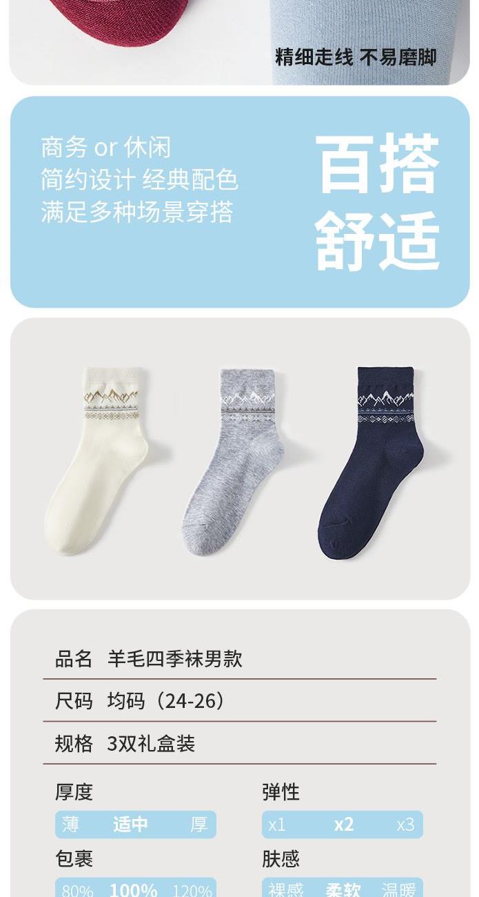 恒源祥羊毛四季袜男款3双装HYX063WZ