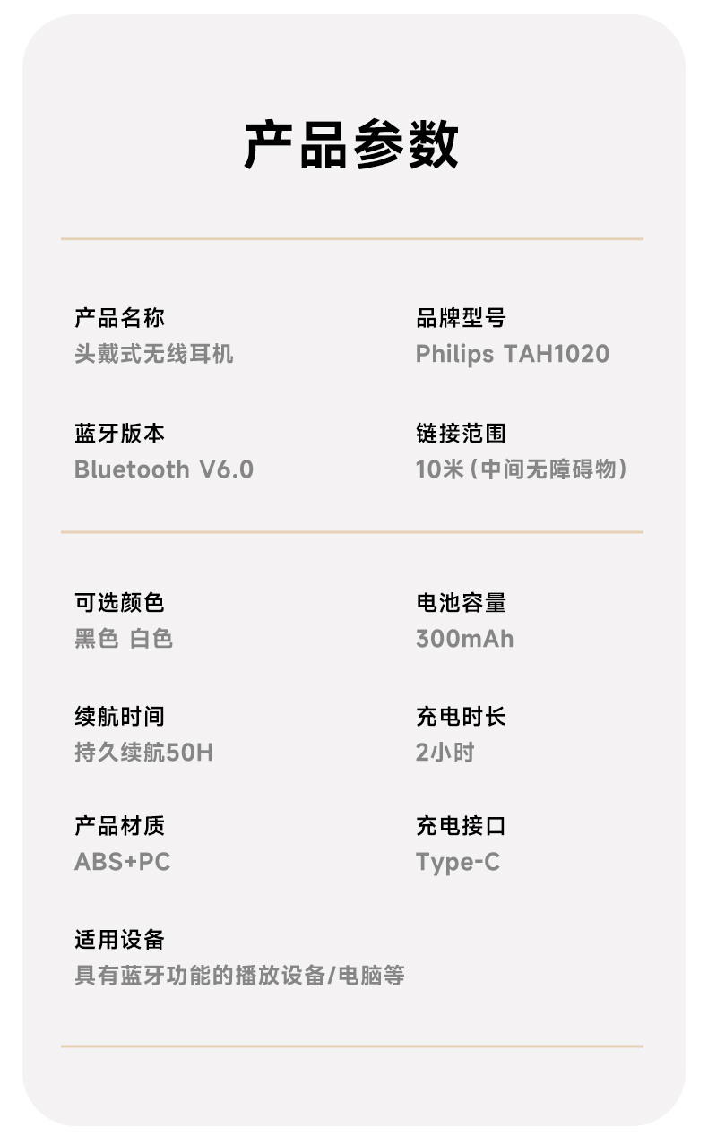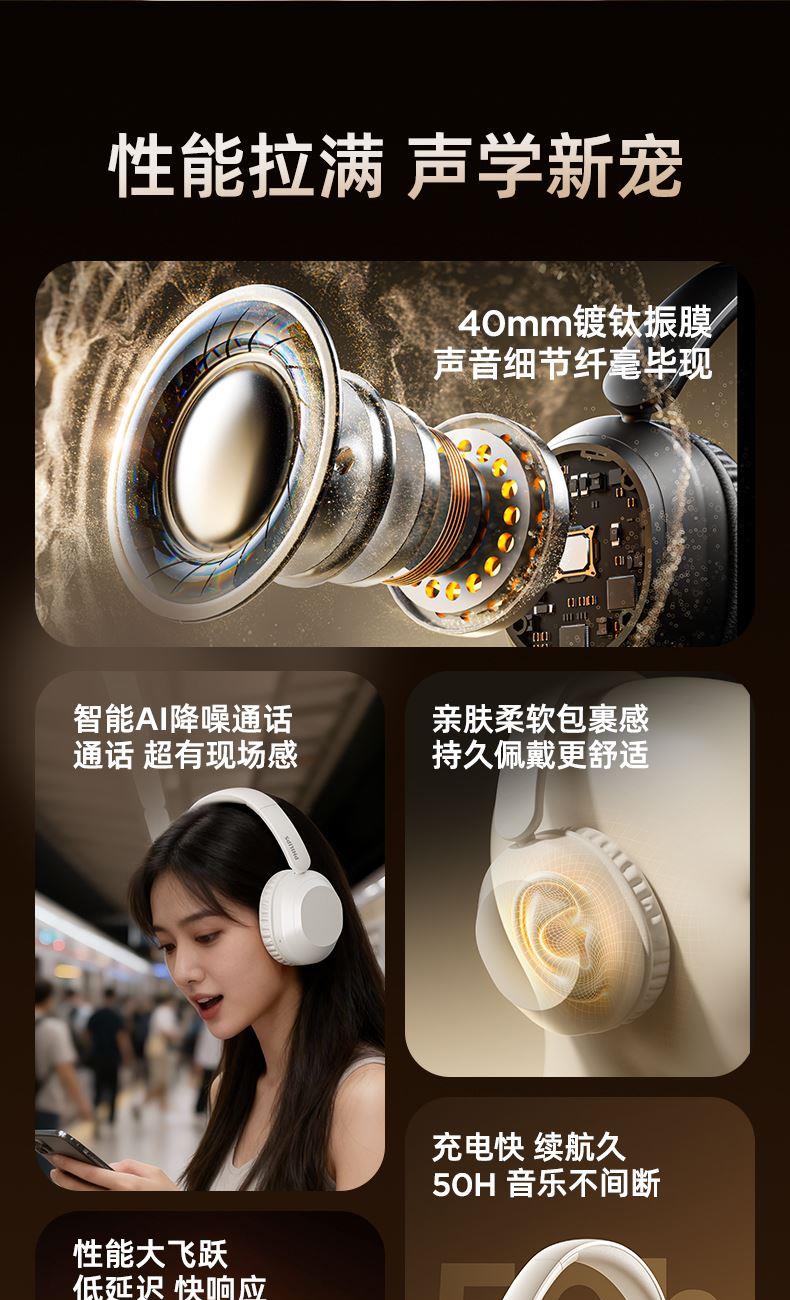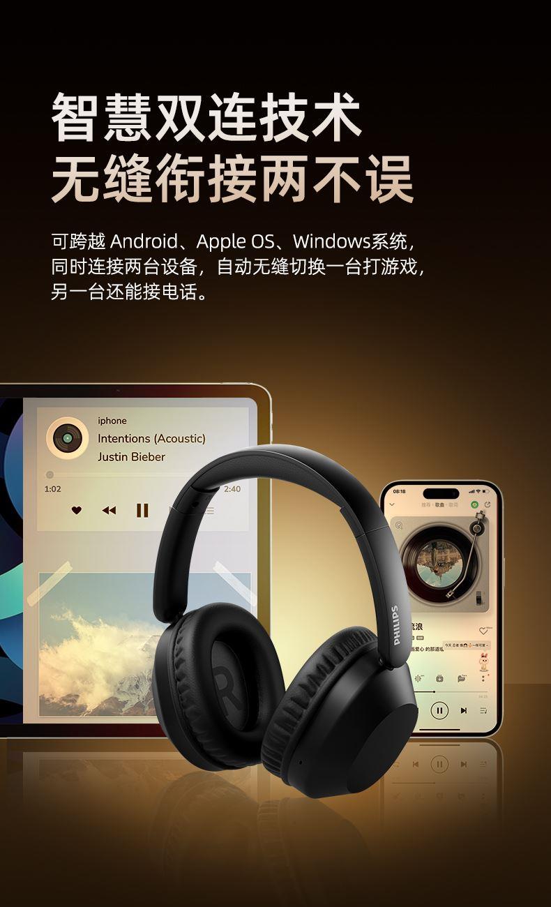 飞利浦头戴式降噪无线蓝牙耳机TAH1020