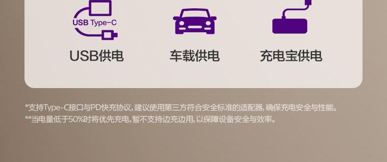 童锁防误触,边充边用:支持(备注:电量低于50%不能边充边用);