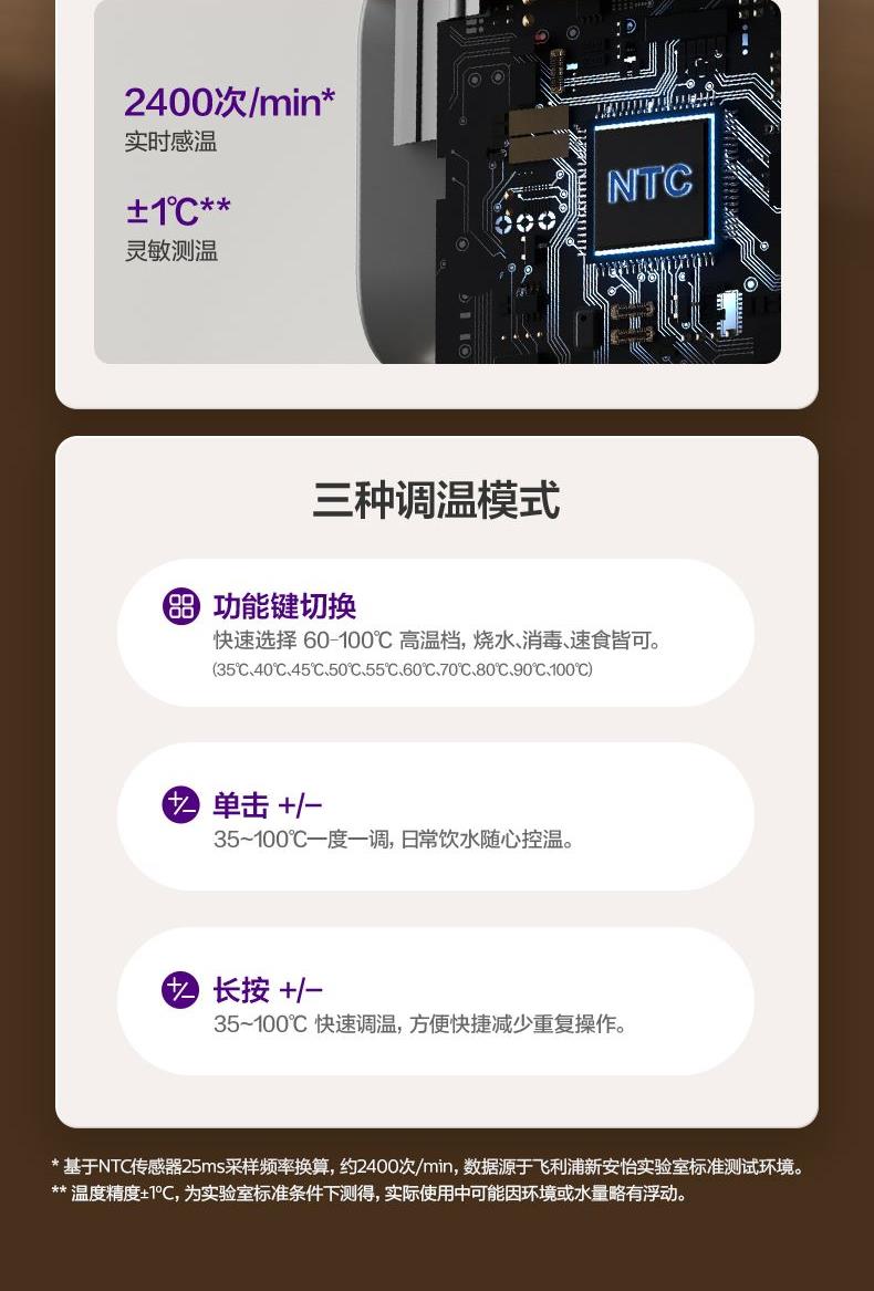 NTC感温,35°~100°C双模式调节:一度一调、档位调节;
