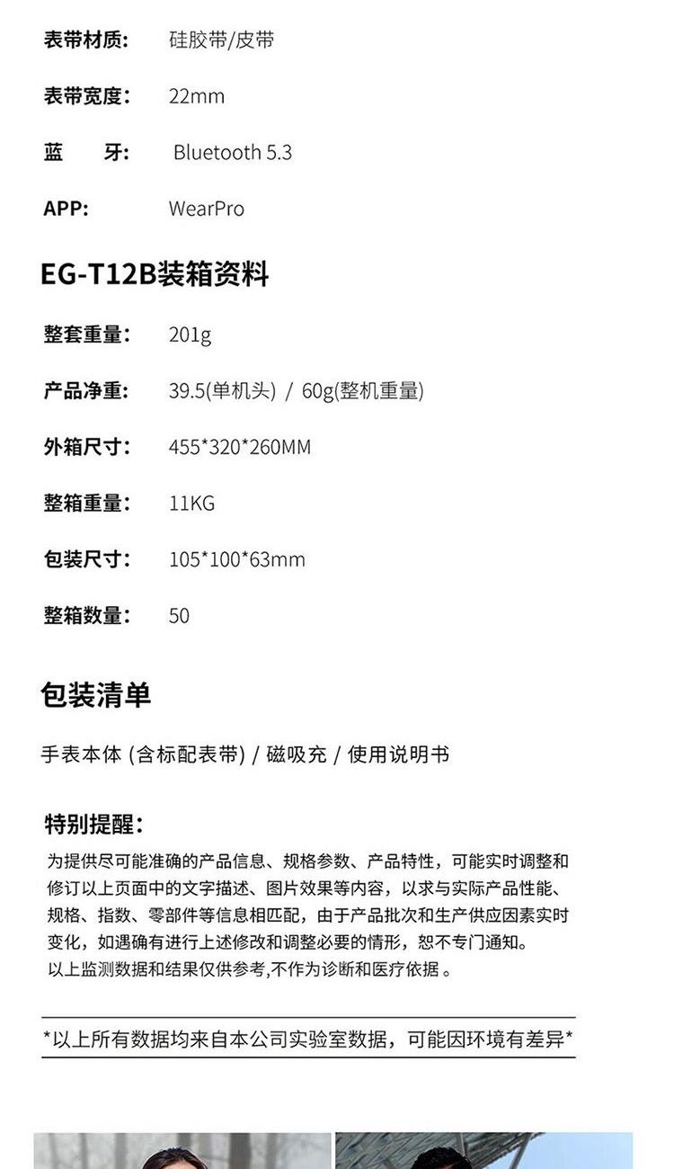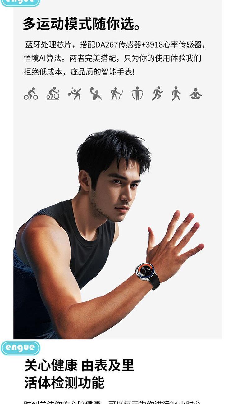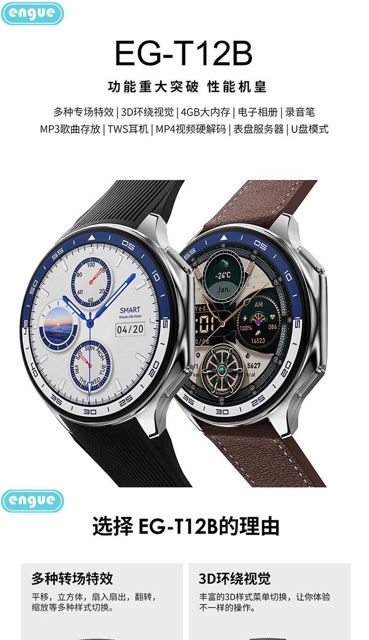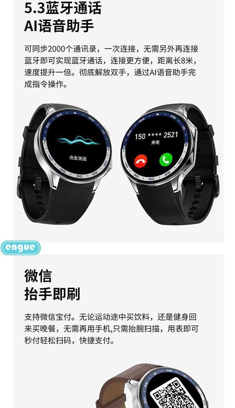 engue恩谷全触屏血压心率智能通话手表EG-T12B
