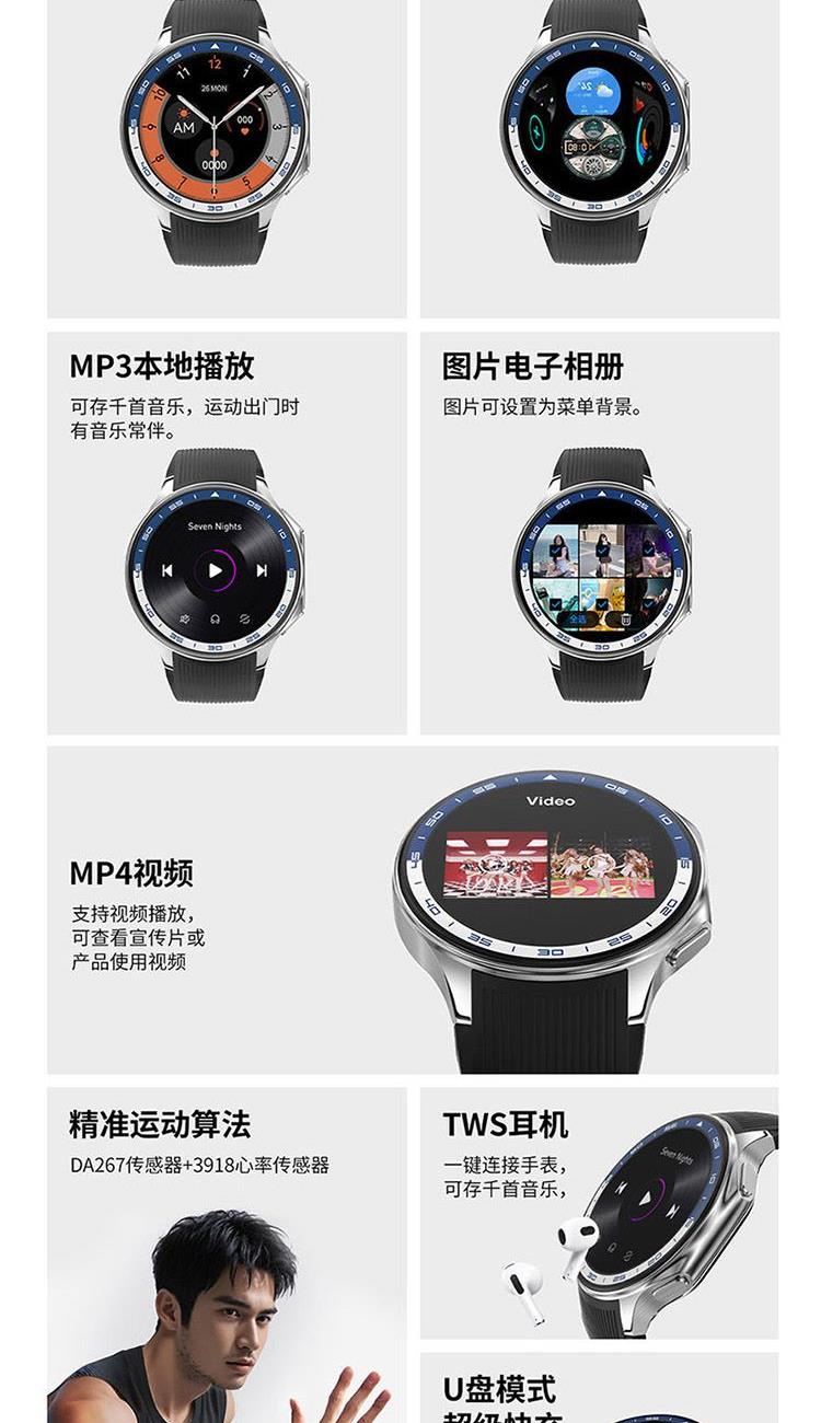 5,支持视频播放、本地音乐、信息推送,熄屏时钟等多种功能