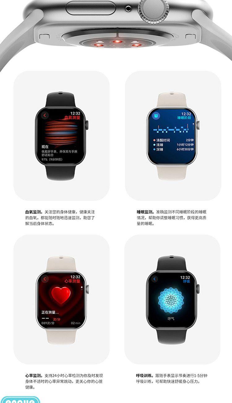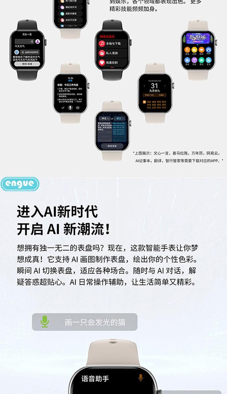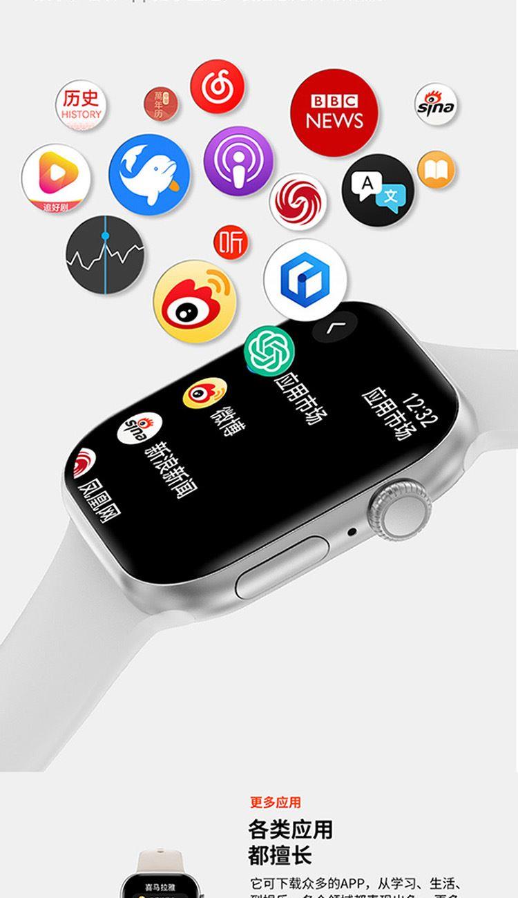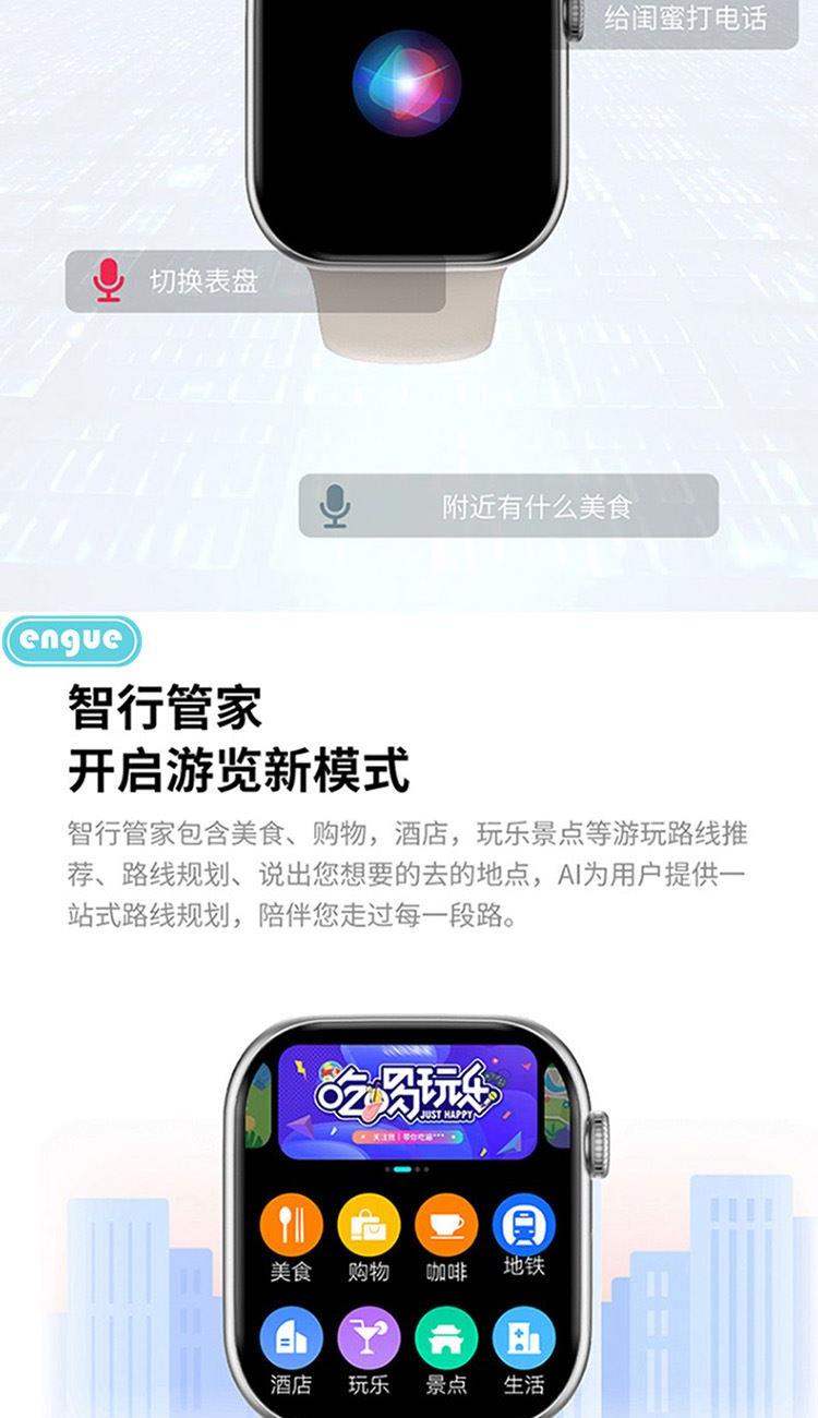 1,显示屏:1.96英寸inch;分辨率320*385;IP67级防水 2,CPU:炬芯ATS3085S;内存:128MB+4GB储存 3,蓝牙5.3;支持通话 4,电池容量:240mAh;使用时间:5-7天 5,支持视频播放、本地音乐、信息推送,TWS耳机等多种功能 6,23国语言包:英语.繁体中文,简体中文.日语,韩语,西班牙语,法语等