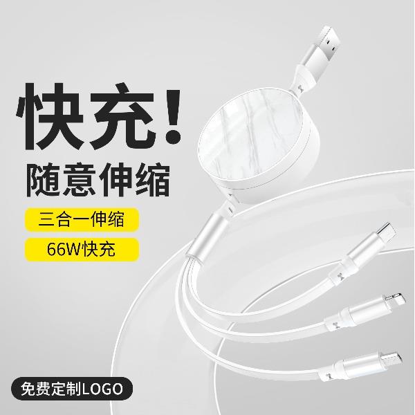 遥里逊简雅一拖三快充伸缩数据线YLX-375