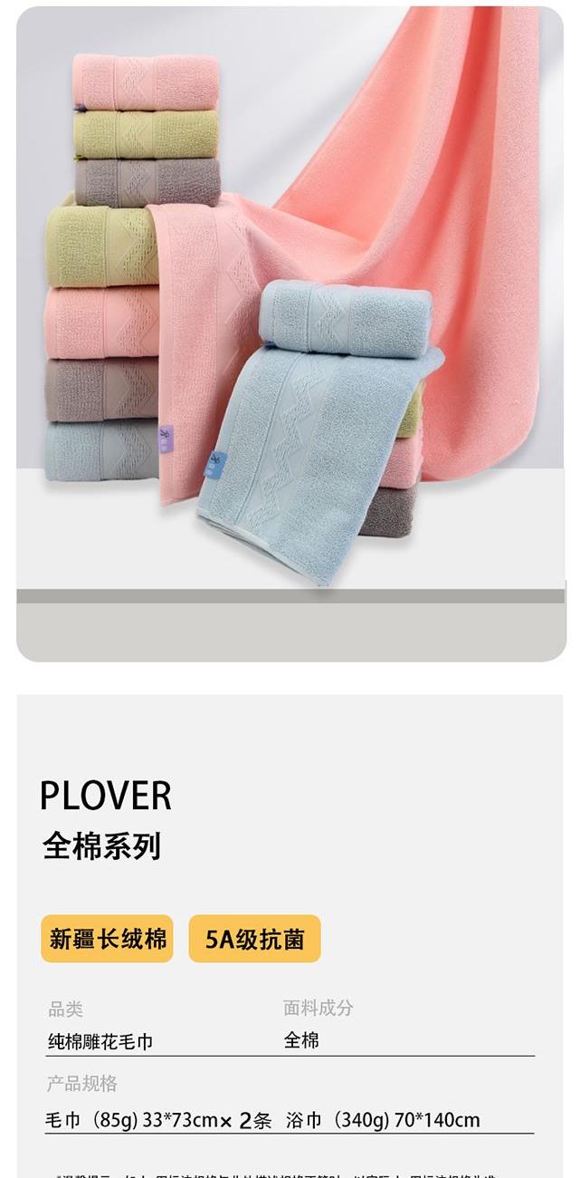 面料:纯棉 规格: 毛巾:33*73cm*2条 浴巾:70*140cm*1条 重量:毛巾:100g;浴巾:370g 1、精密锻档工艺,品质融入每一个细节,活性印染 2、纯棉材质,柔软顺滑,软绵绵的蓬松感,绒毛疏松多孔 3、吸水性好,简约设计,美观大方