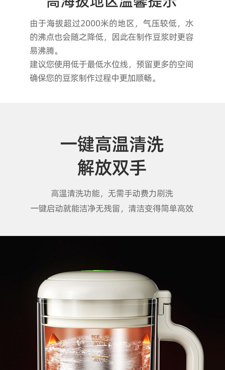 小杯身大肚量,杯体容量700ml,豆浆搅打容量500mL满足2-3人份