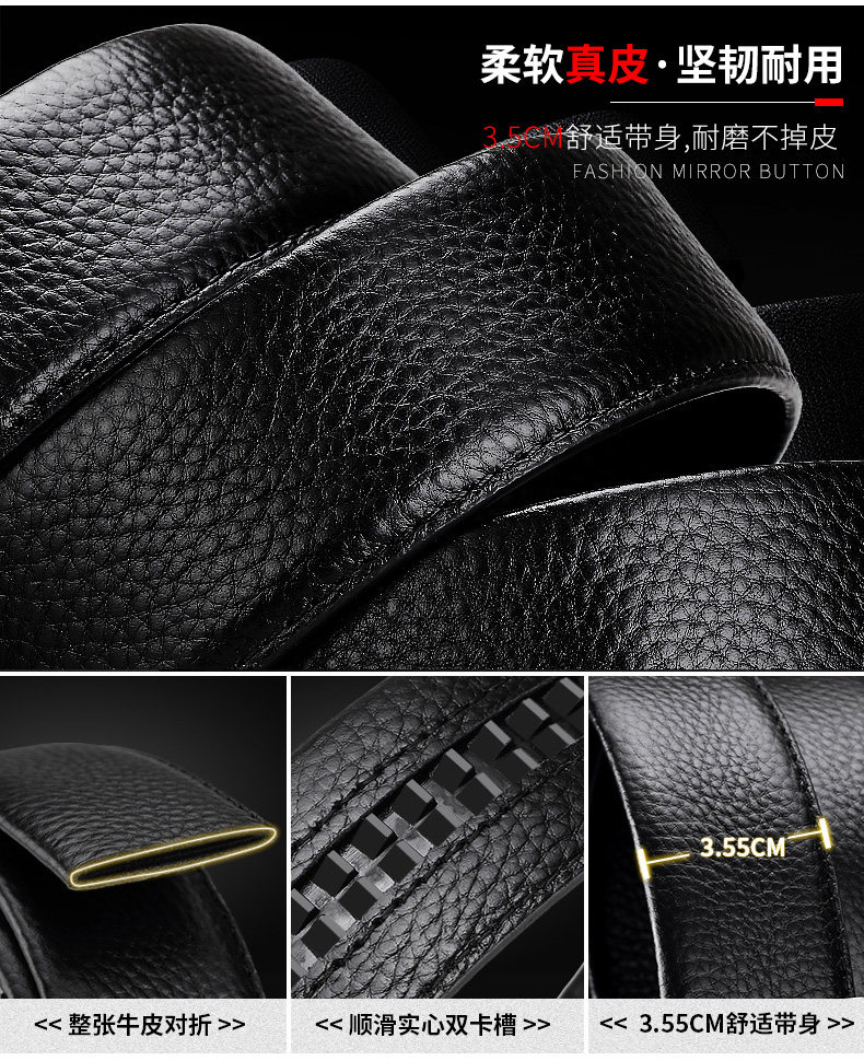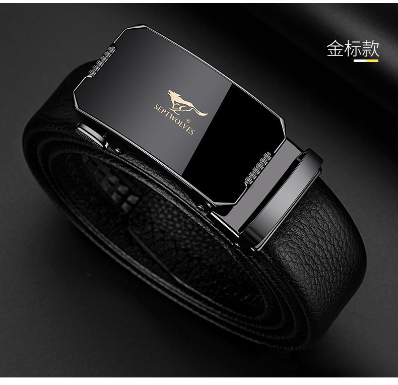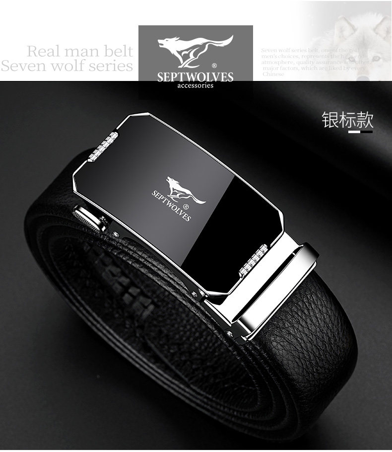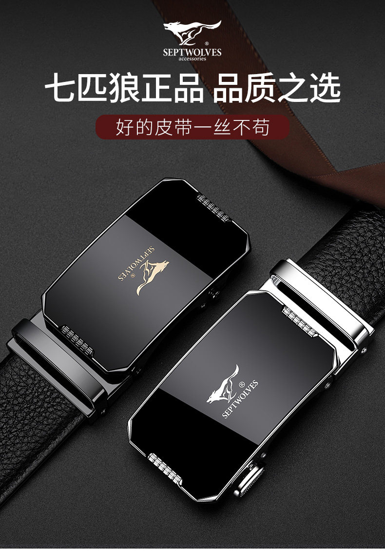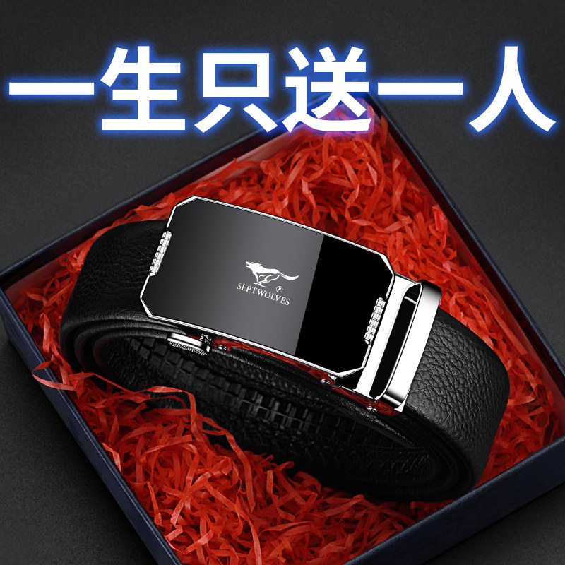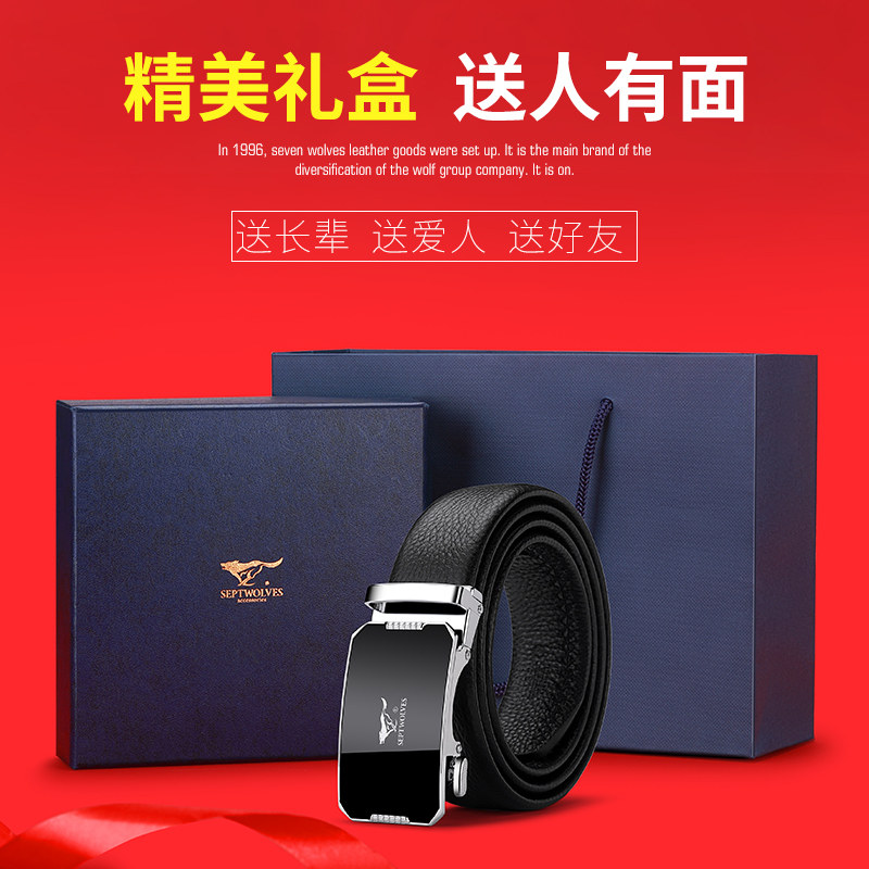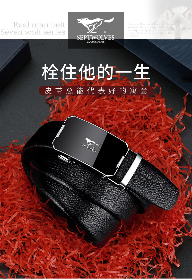 工艺:光面 带扣:自动扣 主体材质:头层牛皮 带扣材质:合金 风格:通勤风 商务风 宽度:3.5CM 送爱人,送长辈,送男士 时尚设计扣头,经典个性,简约百搭,磨砂背扣,材质柔软,手感舒适,经典狼标LOGO 代写贺卡,传递心声,精美礼盒,送礼佳品