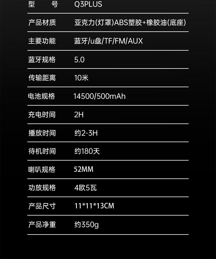 产品材质:亚克力(灯罩)ABS塑胶+橡胶油底座