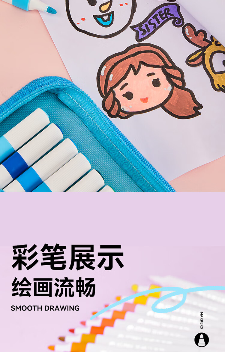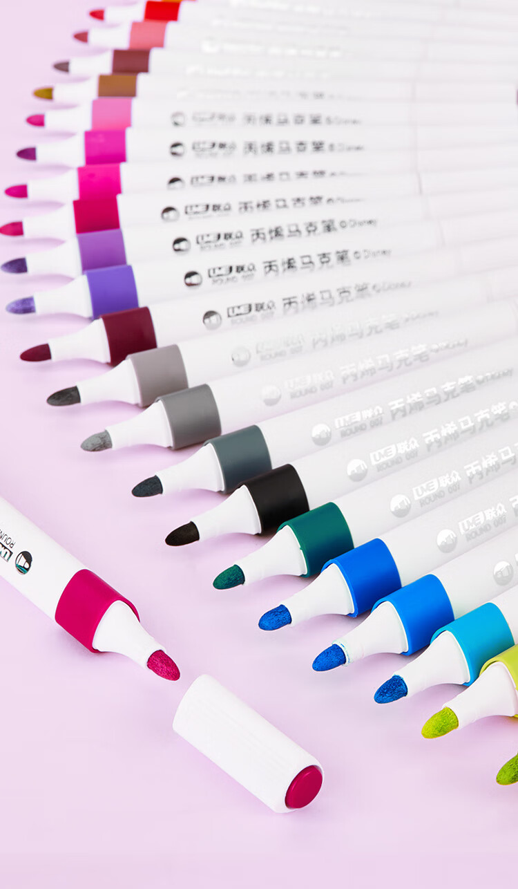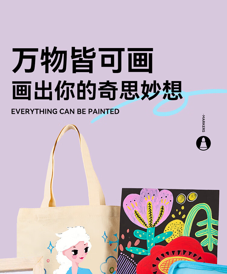 产品规格:36色 单品尺寸:130mm 尺寸:(36色)230X175X45mm 卖点: ①儿童丙烯马克笔任意涂鸦,随心创作 ②纤维笔头、耐磨耐用;附着力强、易上色叠色;颜色鲜艳、显色度高;不易掉色、经久显著 ③手提包装出行便捷 ④纤维笔头设计,耐磨不易变形 ⑤万物皆可画画出你的奇思妙想 ⑥宝宝大胆创作沾上皮肤可水洗 ⑦甄选品质墨水干得快 不易透纸