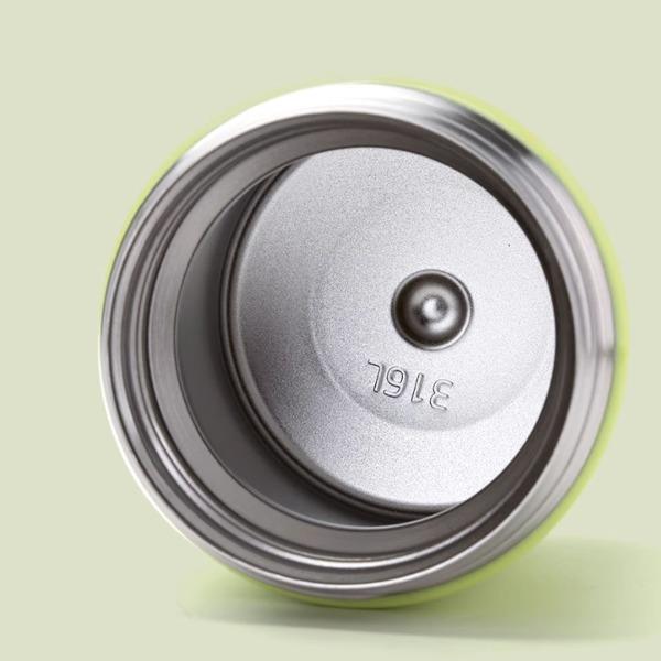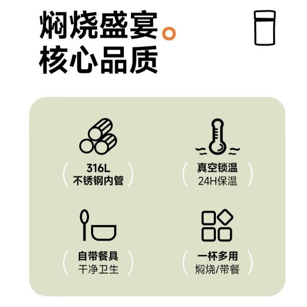 颜 色:OR橘色 GR绿色 BR棕色 PK粉色 GY灰色 容 量:470毫升 保温效力:61℃以上/6小时 36℃以上/24小时 保冷效力:12C以下(6小时) 外管材质:304不锈钢 内管材质:316L不锈钢 盖子材质: 304不锈钢 丙烯与乙烯的聚合物(PP) 瓶塞材质: 丙烯与乙烯的聚合物(PP) 聚丙烯(丙烯均聚物)(PP) 汤勺材质: 304不锈钢 密封圈:食品级硅胶