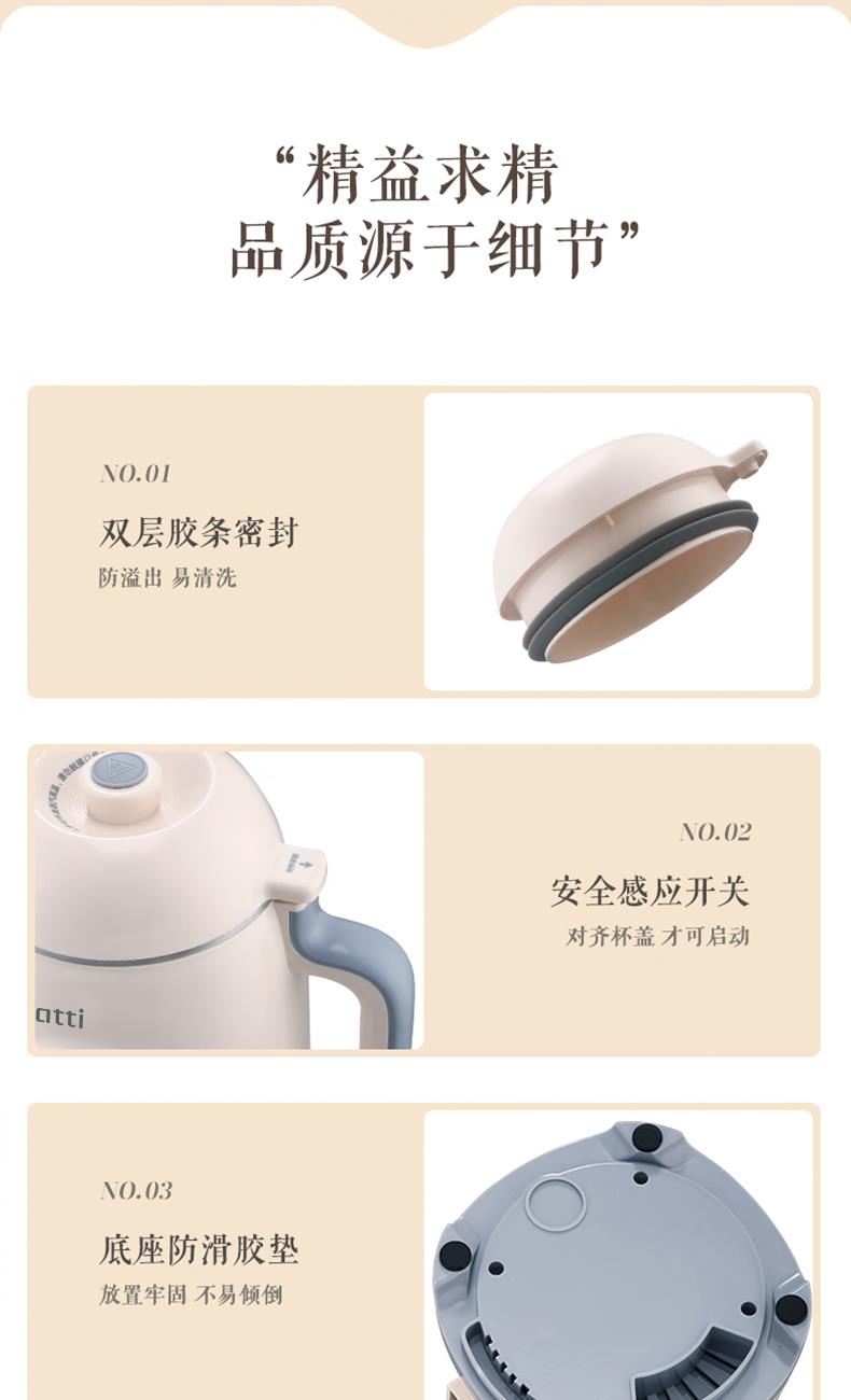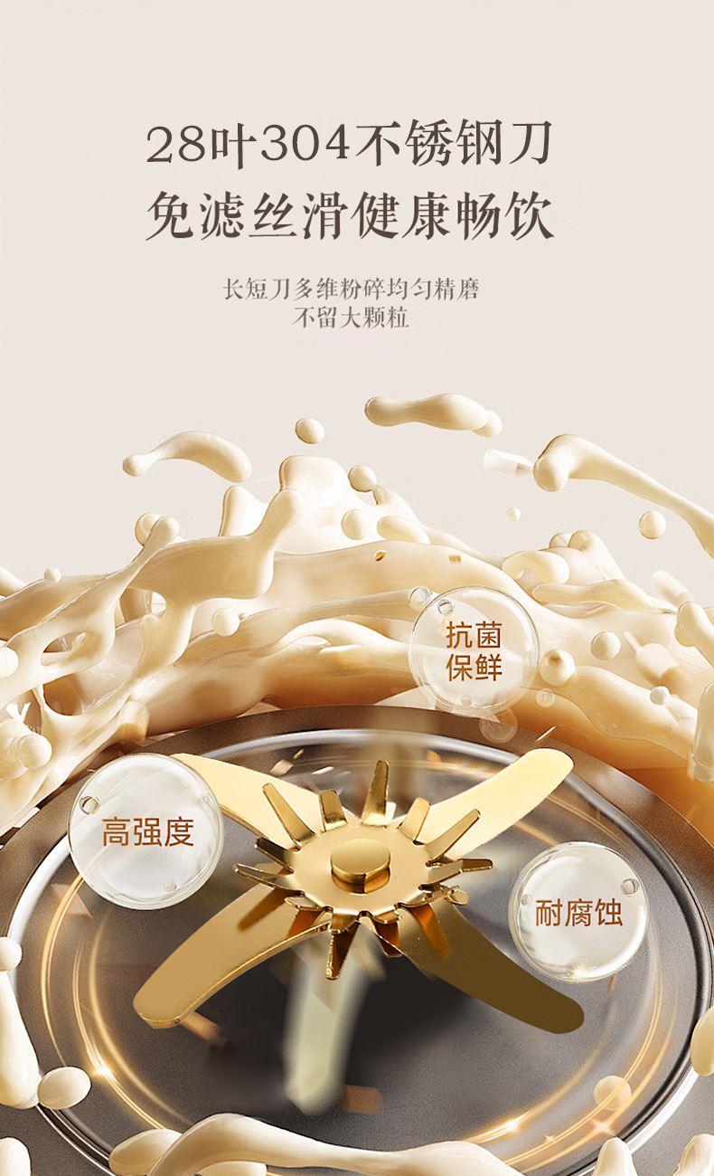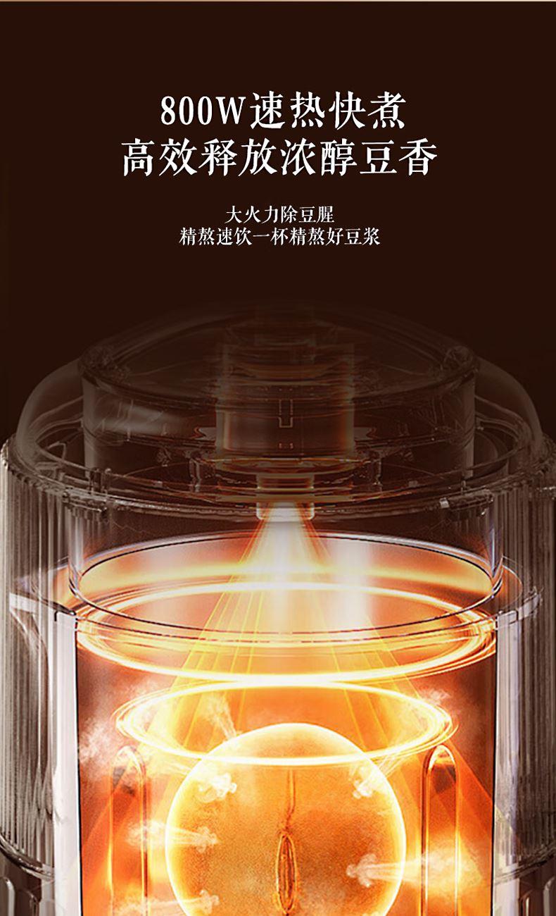 1. 速热快煮:干豆直打,800W速热快煮,高效释放农醇豆香,无需过滤无渣感,新鲜细腻。 2. 1.5L容量:1.5L大容量,一次搅打,全家畅享无压力。 3. 智能彩屏: 智能彩屏触控屏,菜单清晰呈现,轻触大屏一键解锁花式饮品。 4. 安全材质:不锈钢内胆,告别易粘易磨损烦恼。