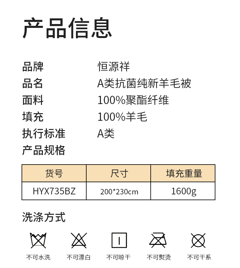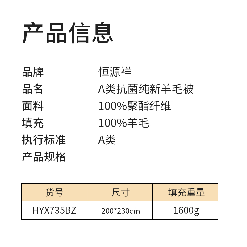 规格:200*230cm 面料:聚酯纤维 填充:羊毛 填充重量:1600g 总重:约2750g