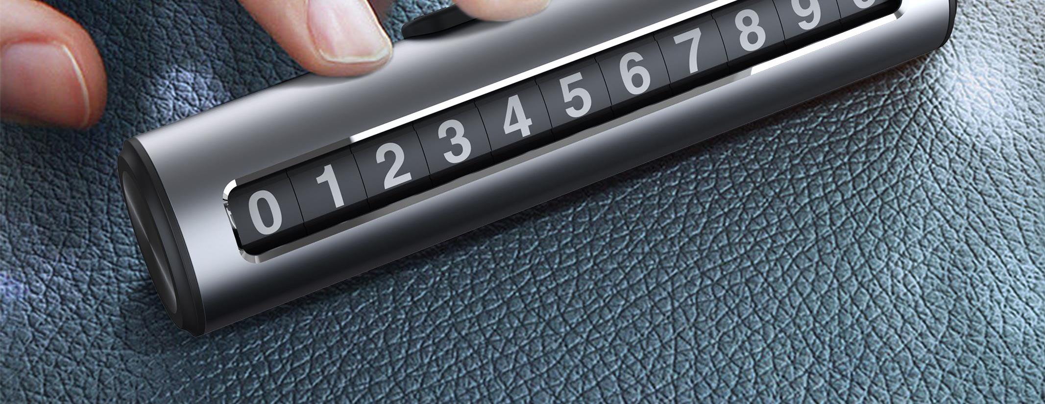 颜 色: 黑 色 材 质:PC+ABS塑胶 / 铝合金 产品尺寸:120*33*25mm 产品包装尺寸:160*70*35mm 产品净重:67g ● 金属制品,防晒耐热,不易老化 ● 波动拨片进行数字切换 ● 一键式号码隐藏 ●滑块按键隐藏号码 ●滚轮号码结构