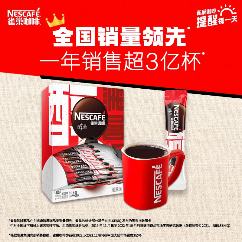 雀巢醇品速溶美式黑咖啡0糖0脂48条*1.8克盒装