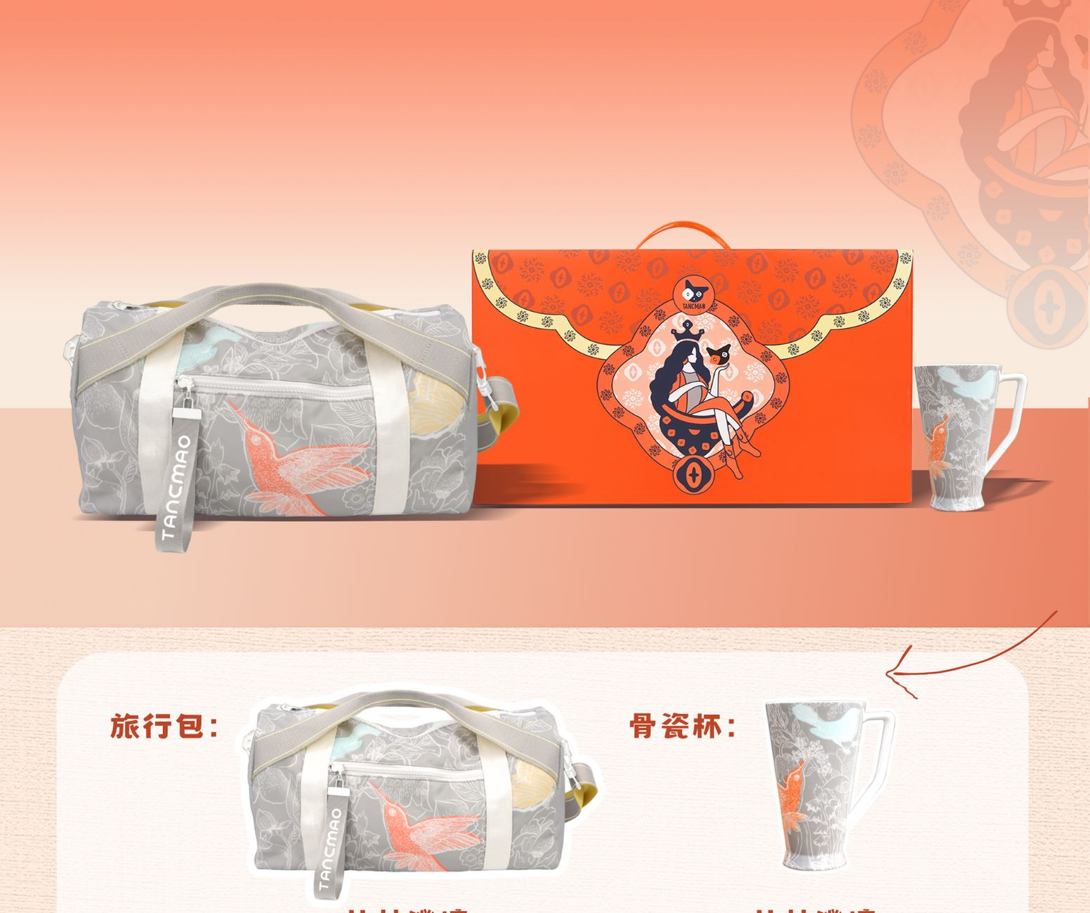 手提插口盒*1旅行包*1,440*200*230mm丛林灰/海洋蓝漫享骨瓷杯*1.丛林灰/海洋蓝 500ml