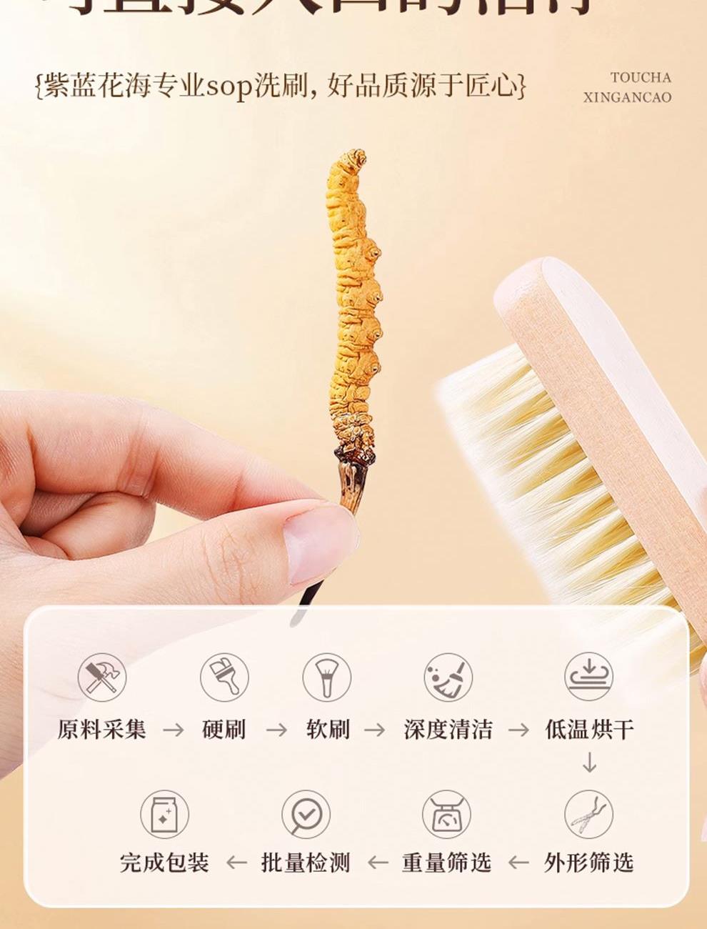 规格:8克(约32支) 卖点: 西藏是冬虫夏草的重要产区,那里的高海拔环境,如雪山、草地,昼夜温差大,紫外线强烈。这种独特的生态环境造就了冬虫夏草的高品质,它生长在这样严酷的条件下,积累了丰富的营养成分。
