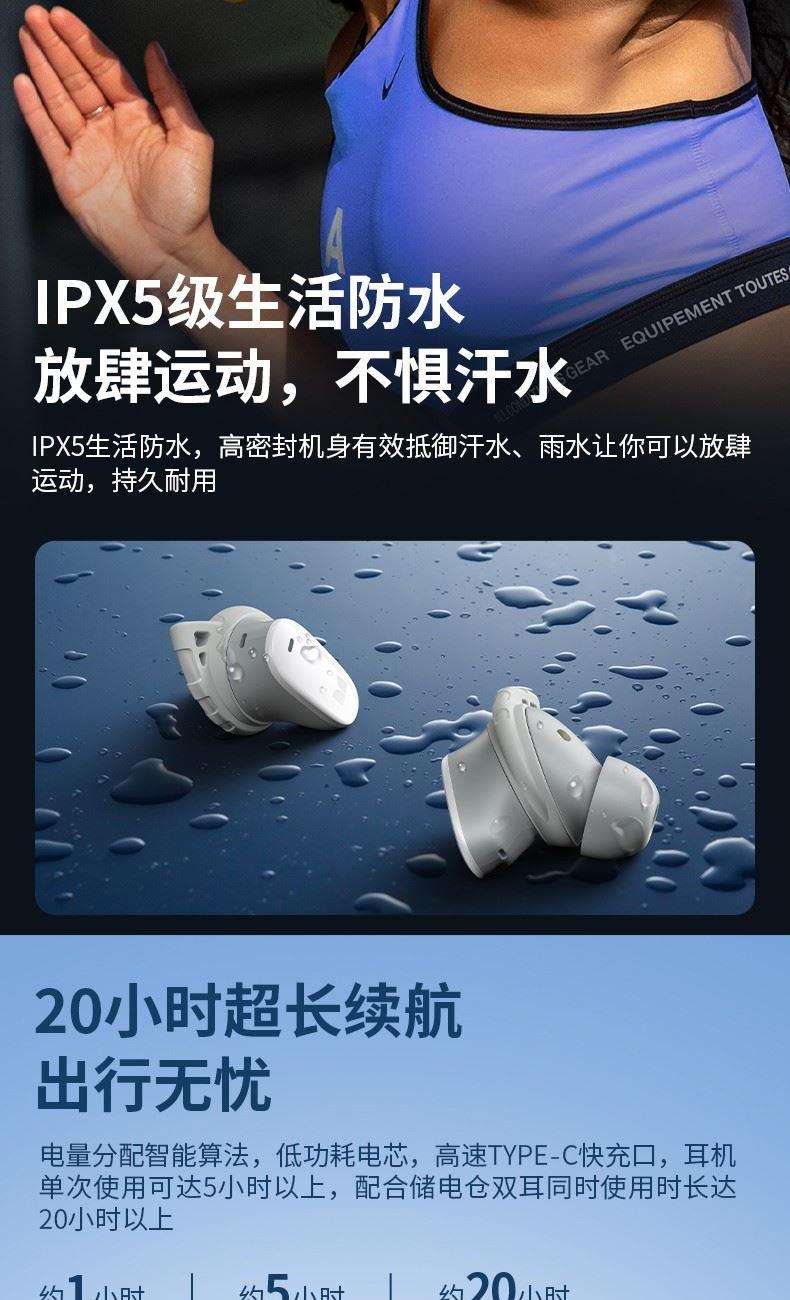 防水等级:耳机IPX5,充电仓不防水