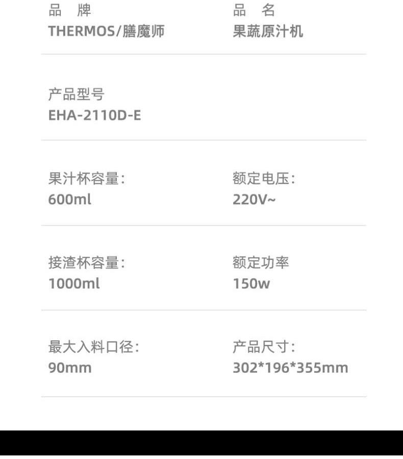 投料仓容量:1L 果渣杯容量:1L 果汁杯容量:600mL