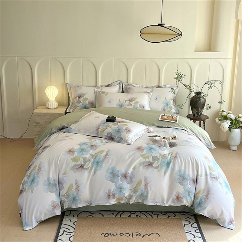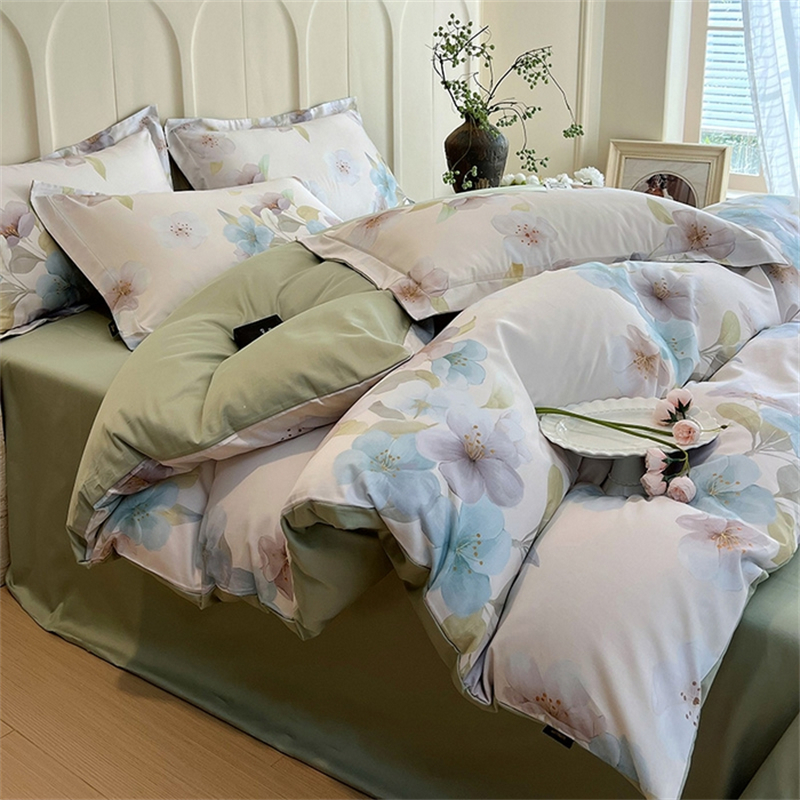规格: 床单:230*250cm±5cm 被罩:200*230cm 枕套:48*74cmx2 面料:棉 1、优选好棉,贴身的更要精挑细选 2、活性印染工艺,健康环保,无甲醛,无致癌物 3、色调清新有层次,吸湿亲肤舒适,轻薄透气,缩水率低