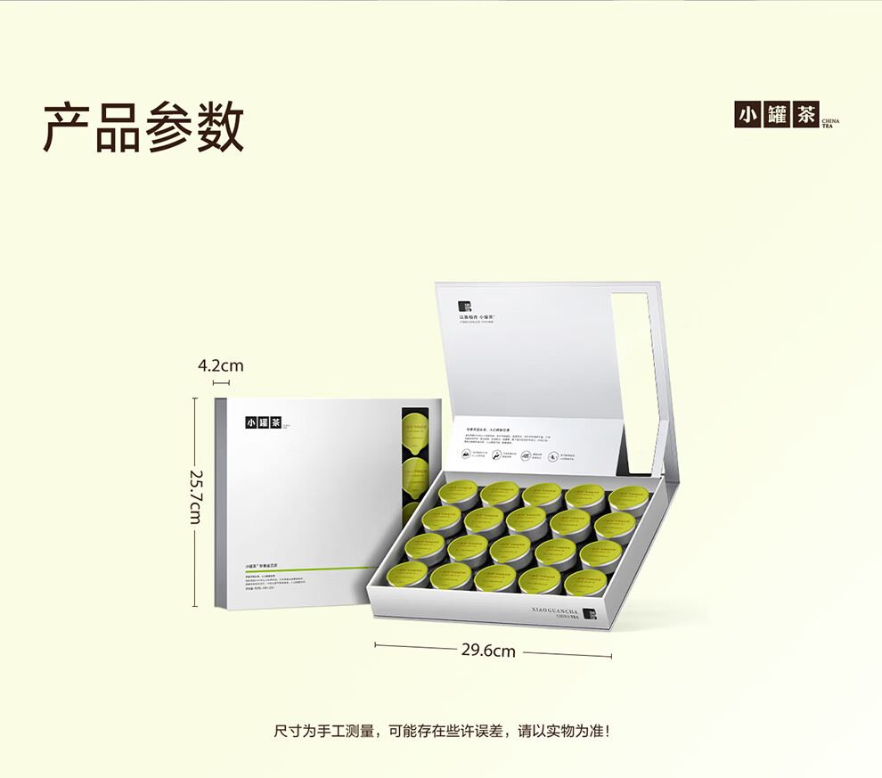 精致礼盒包装,送礼体面彰显尊贵。20罐独立包装,传递社交礼赠祝福。一饮一罐,定量封装,手不沾茶,更显品位;一盒满足礼赠贵宾、商务会面、重要答谢等需求。