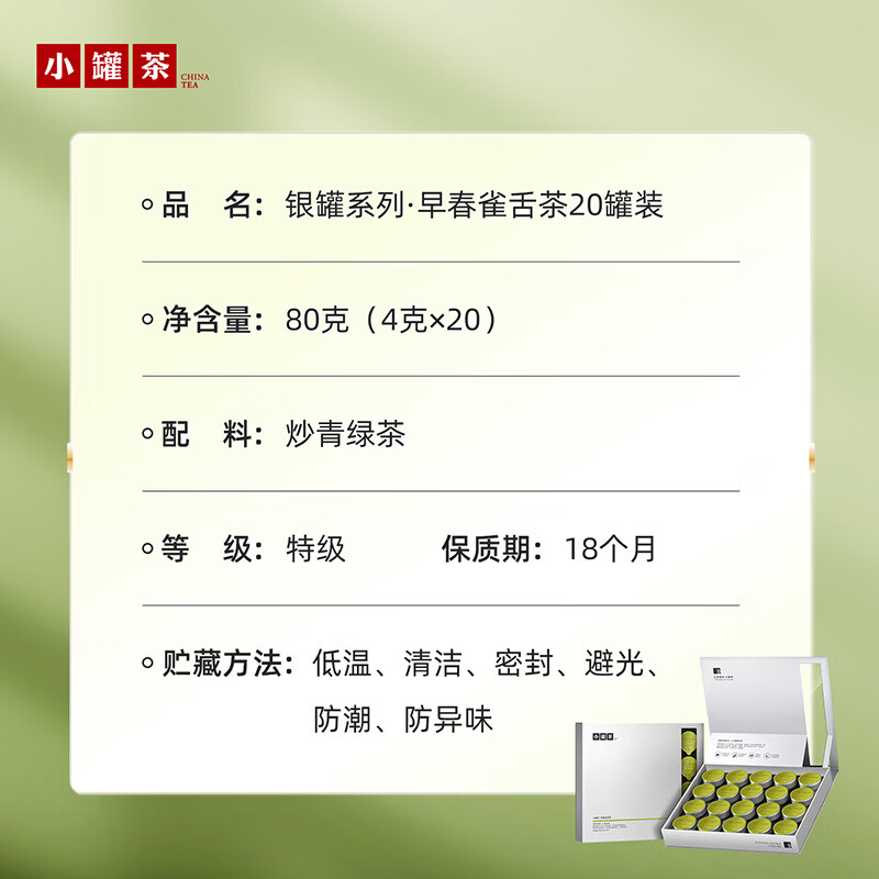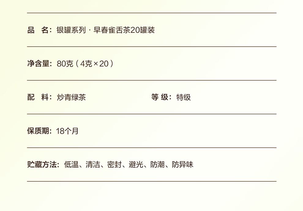 银罐系列·早春雀舌茶20罐装 等级:特级