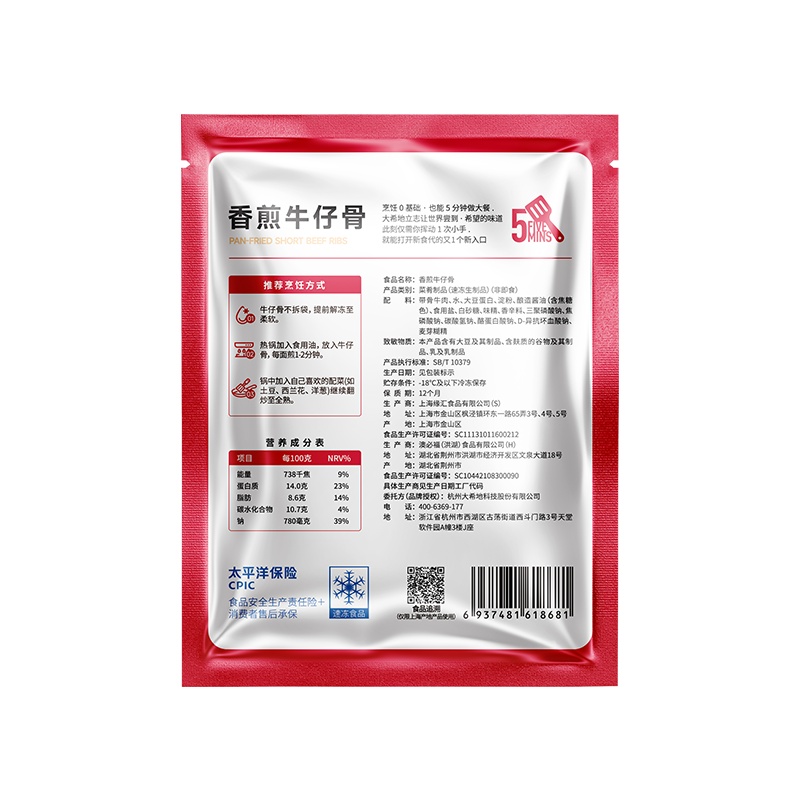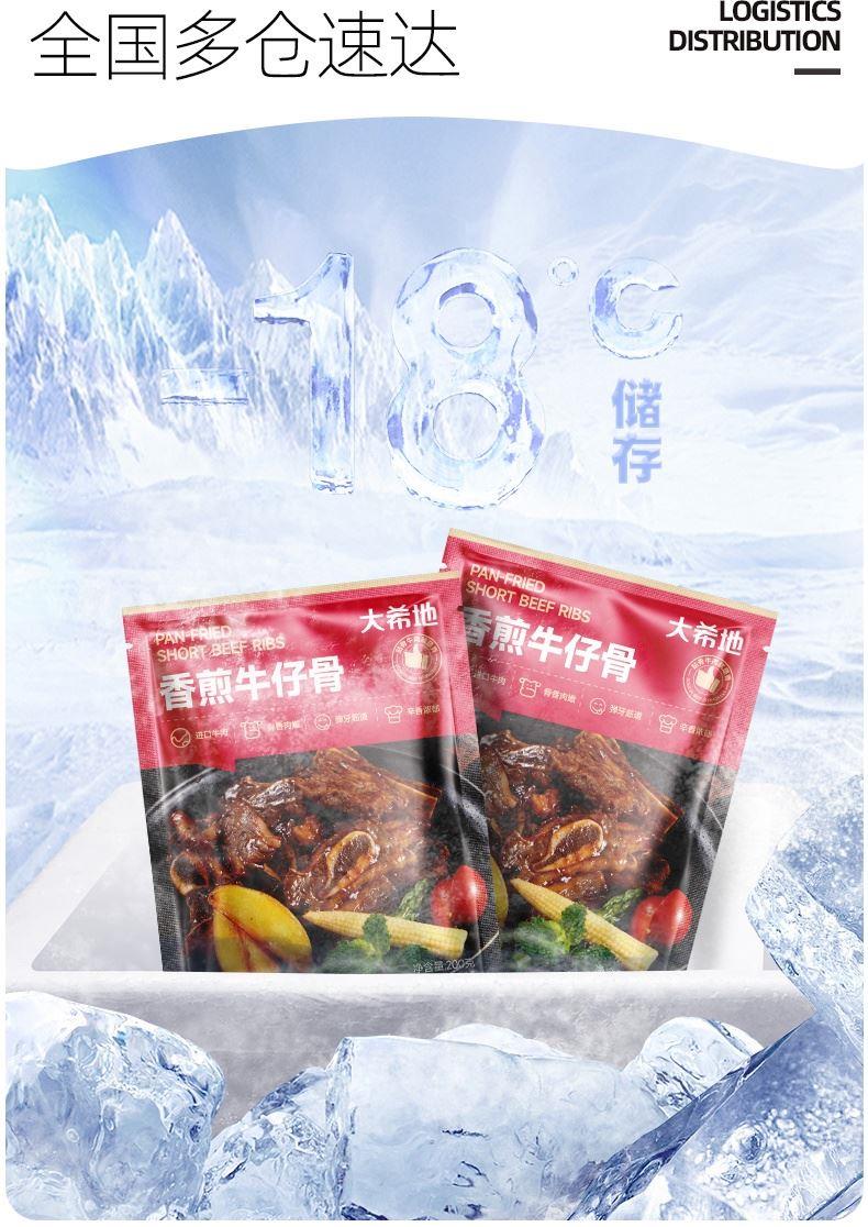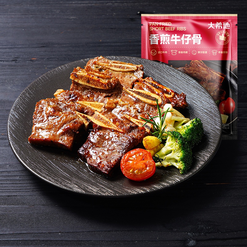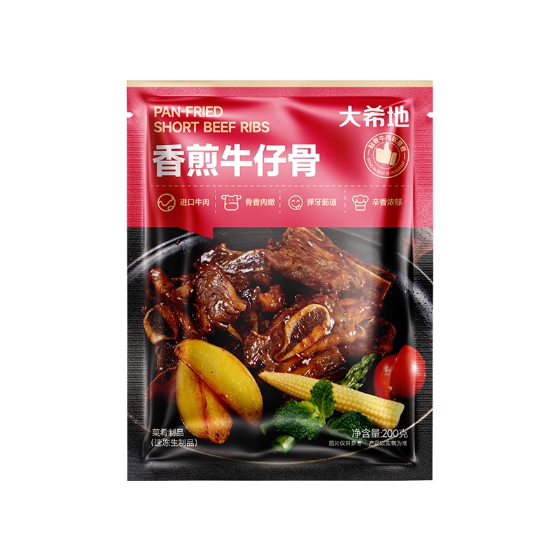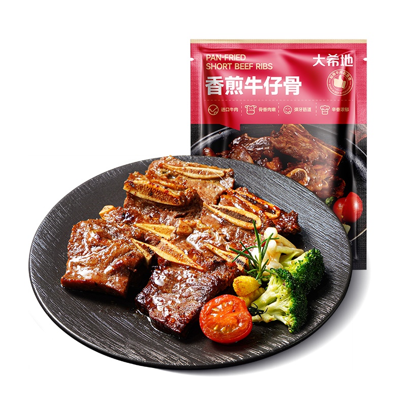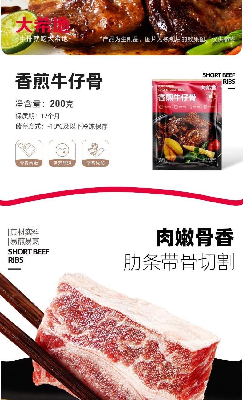 产品参数配置 大希地牛仔骨:200g / 袋,共 4 袋 产品卖点说明 带骨鲜香,分量充足:精选牛仔骨,200g*4 袋组合,带骨肉质鲜嫩多汁,骨香浓郁,满足家庭多次食用需求。 便捷烹饪,场景百搭:预处理免复杂处理,煎烤即食,适配正餐、烧烤等场景,省时又美味。